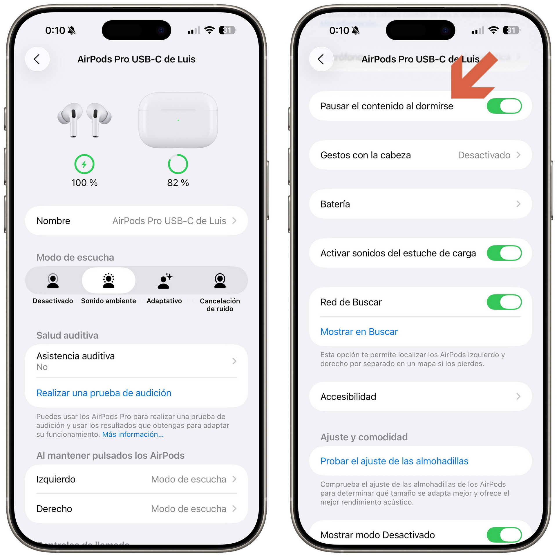 Activa esta opción para que tus AirPods pausen la reproducción cuando te duermes