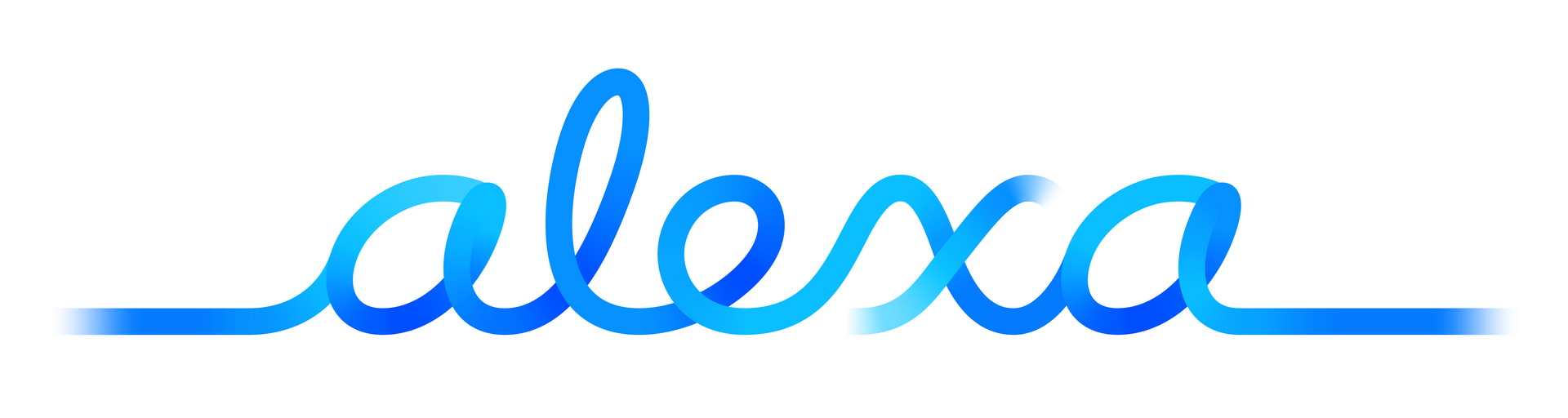Texto azul degradado que forma la palabra alexa sobre fondo blanco. Diseño moderno y fluido.