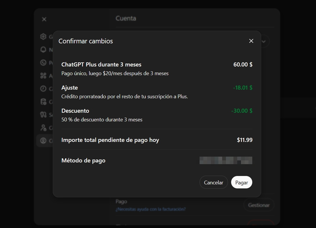 Pasos para intentar conseguir el 50 % en ChatGPT Plus