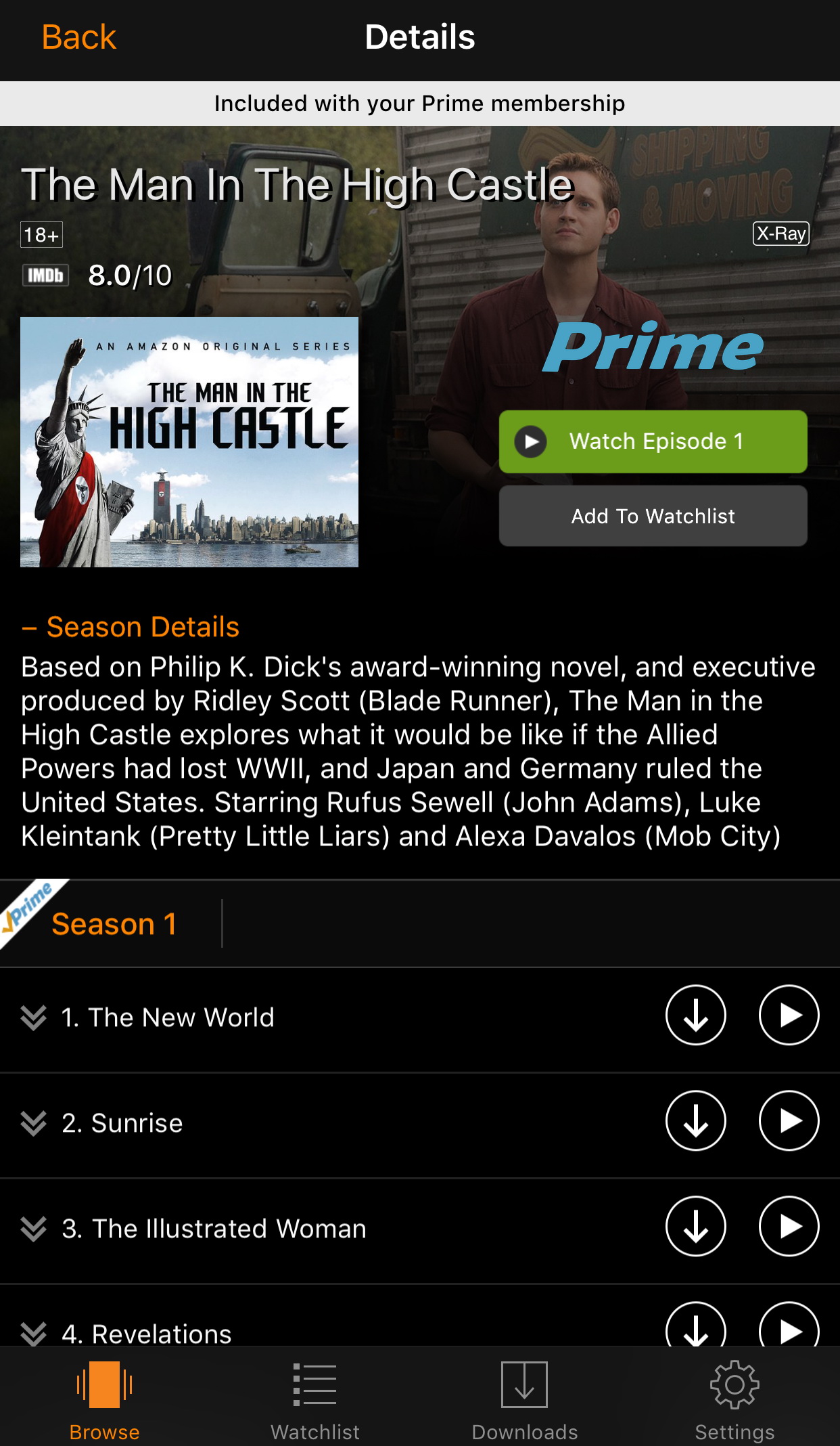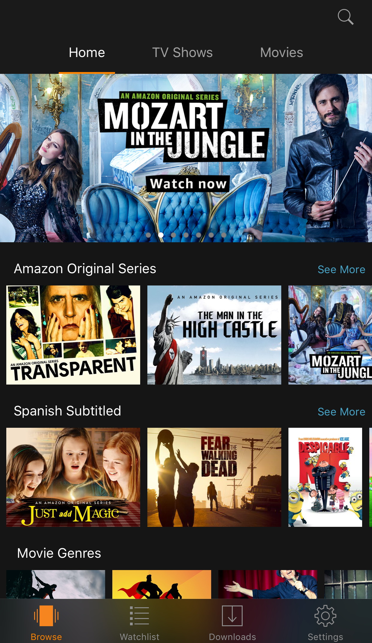 El catálogo de Amazon Prime Video es bastante más reducido que el de sus competidores y, por lo que hemos visto algunos contenidos no tienen audio en castellano. Los grandes títulos de la temporada son sus series de producción propia como Man in the High Castle, Transparent o The Grand Tour.