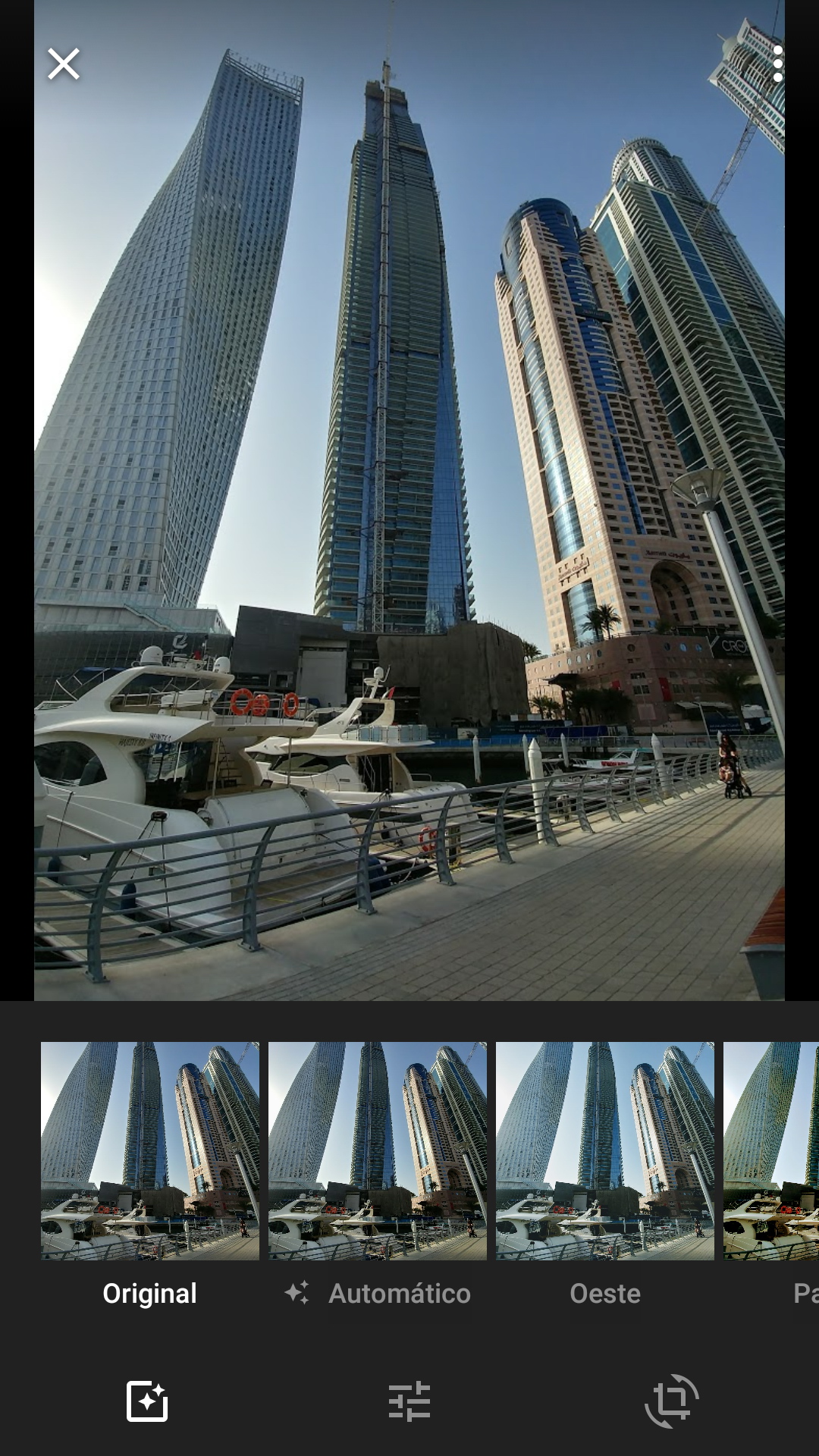 Fotos también permite realizar ciertos retoques a la imagen como girar, recortar, aplicar filtros, ajustar la exposición, controlar el contraste, etc.
