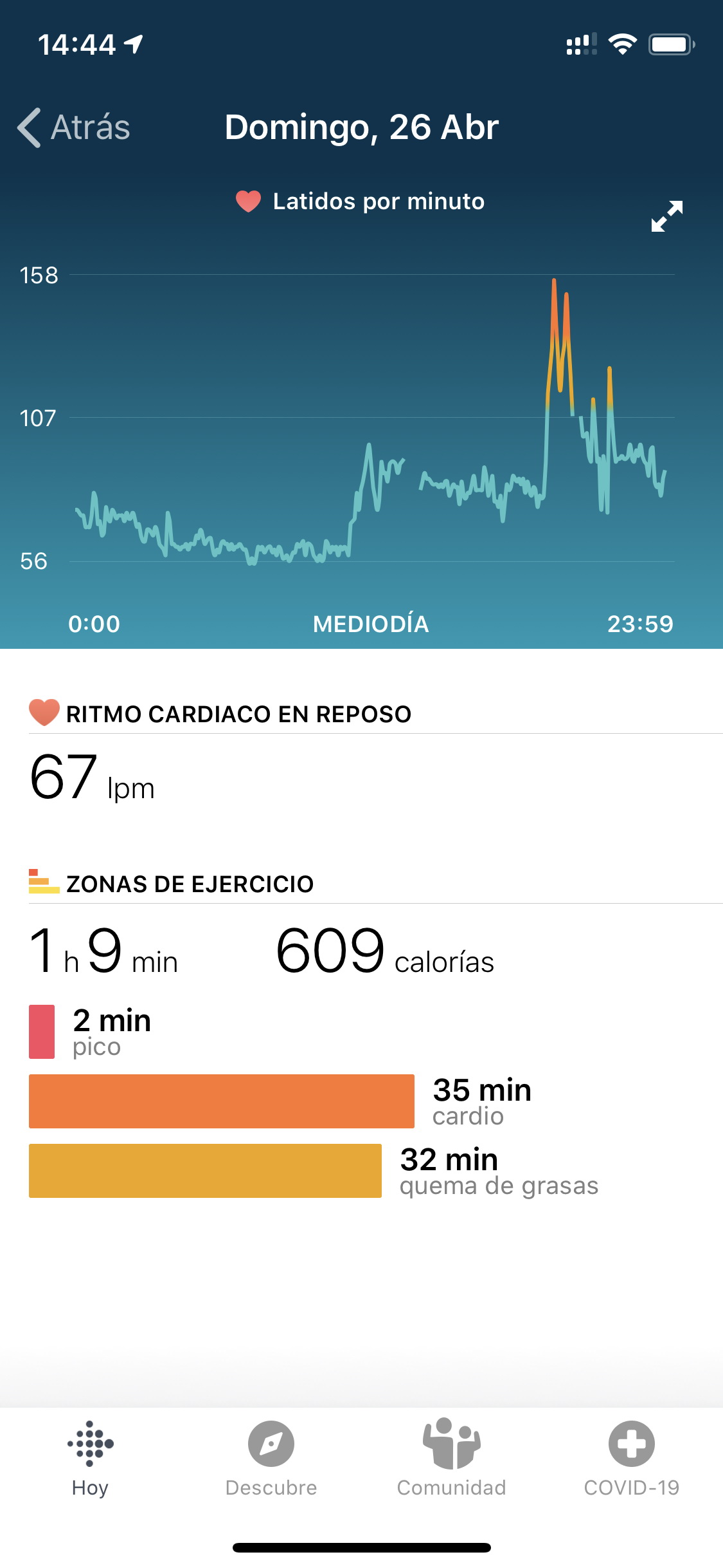 Además, si llevas la pulsera cuando duermes, obtienes la medida del ritmo cardíaco en reposo, que según los especialistas es una medida representativa de la salud de tu corazón.