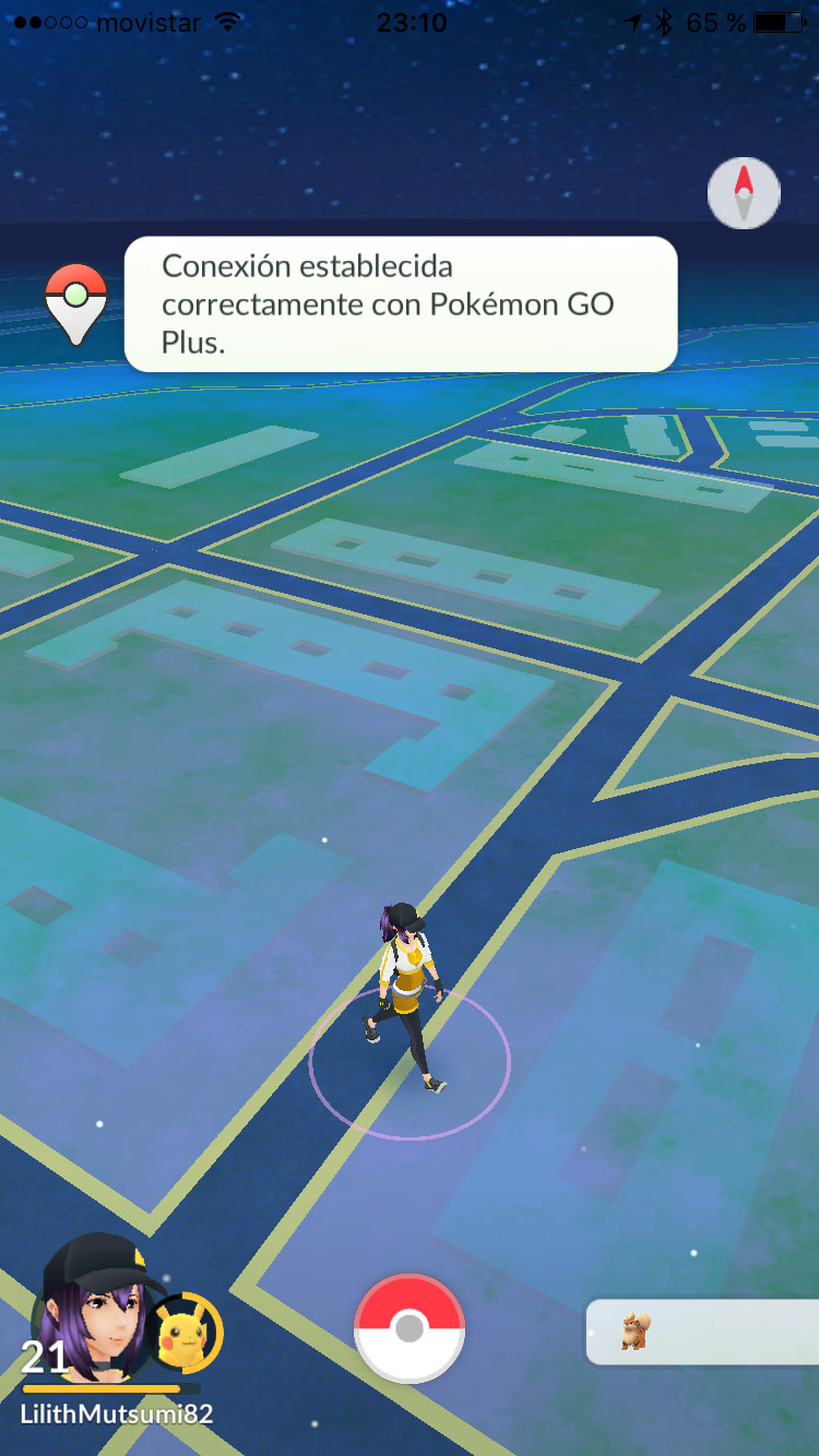 Cuando lo encuentre, pulsas sobre él y ya estará listo. En la pantalla principal, verás un icono de Pokémon GO Plus en el lado izquierda. Si está encendido, ya puedes utilizarlo.