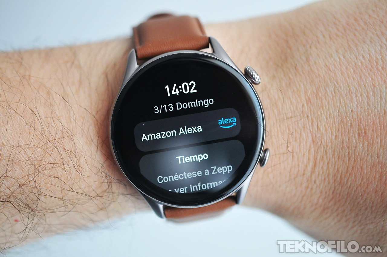También incorpora el asistente de voz Alexa para poder configurar una alarma, hacer una pregunta, obtener una traducción e incluso manejar dispositivos inteligentes de tu hogar. Cuando no tienes conexión, también tienes acceso a un asistente de voz offline que permite ciertas operaciones como activar un modo deportivo o abrir una función de salud mediante comandos de voz.
