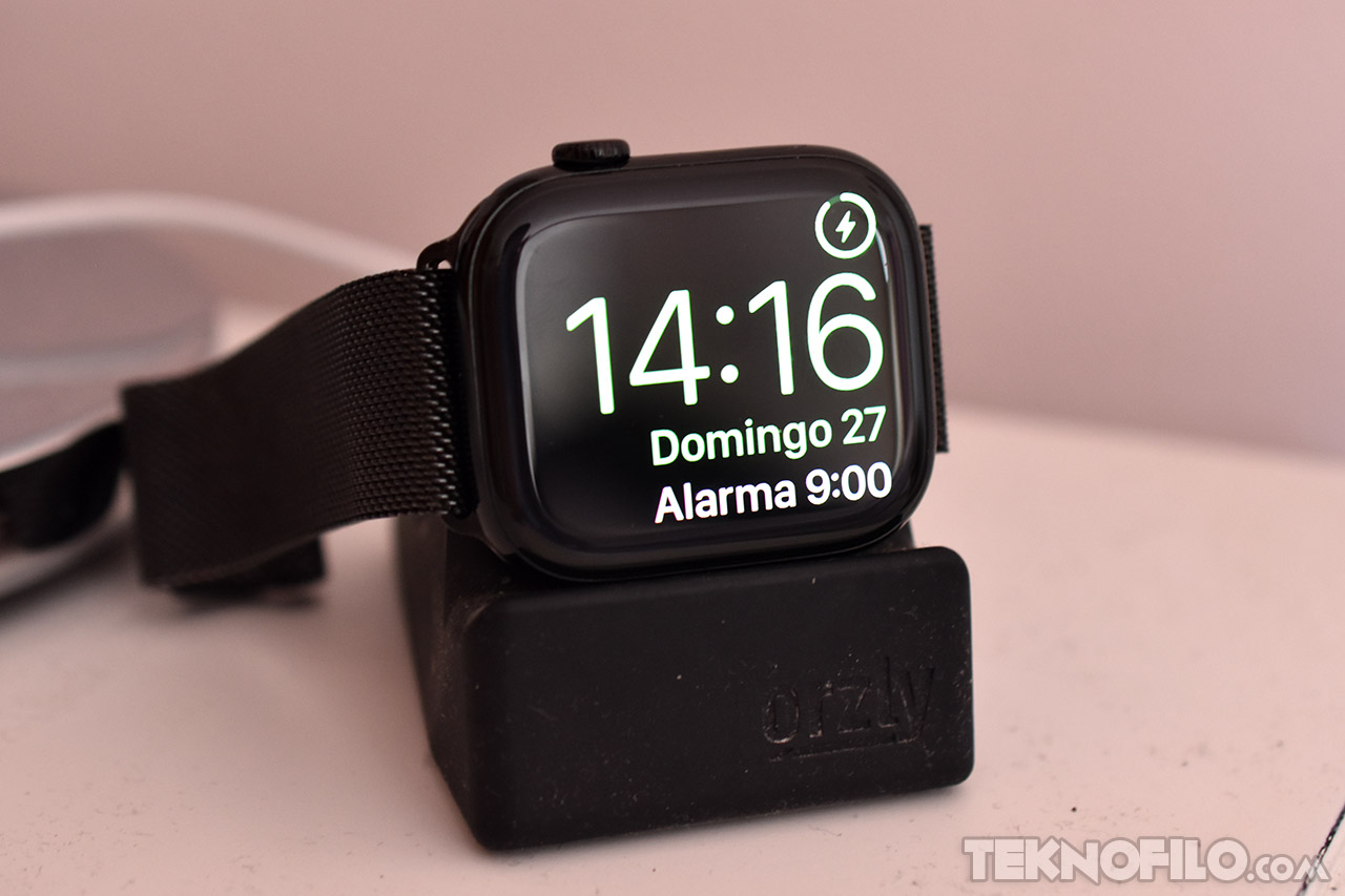 Dado que en su día no conseguí encontrar una forma cómoda de colocar el Apple Watch sobre la mesilla estando acoplado a la base de carga, acabé comprando una base de apoyo para carga que me permite apoyar el Apple Watch y tener la seguridad de que hay contacto y carga. Reciente, la he sustituido por esta otra base de carga inspirada en los primeros Mac (🛒 17,99€)