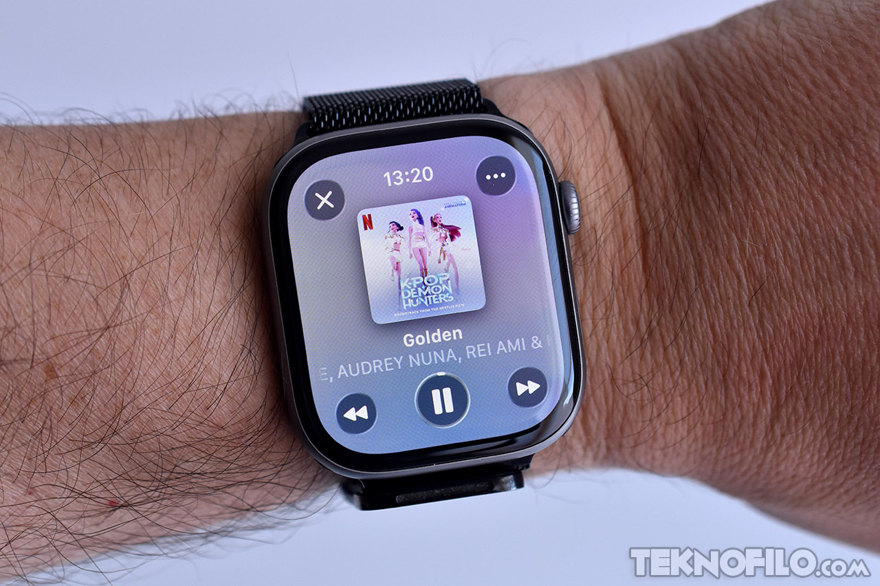 Además, cuando estás a menos de 4 metros de tu HomePod, el Apple Watch Series 11 activa la función En reproducción para un mejor control de audio, o proporciona sugerencias en el Grupo Inteligente para que reproduzcas música en el HomePod.