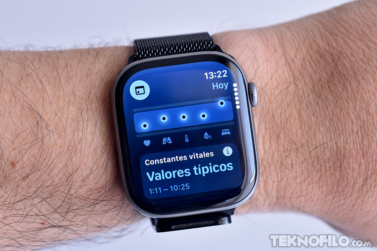 En el apartado de salud, Apple incluye la detección de caídas, la monitorización del nivel de ruido ambiente, la monitorización del ritmo cardíaco, la capacidad de registrar el ECG, la identificación de signos de fibrilación auricular, la medición de la saturación del oxígeno en sangre, la identificación de signos de hipertensión, la puntuación del sueño, la detección de signos de apnea del sueño y la medición de la temperatura en la muñeca.