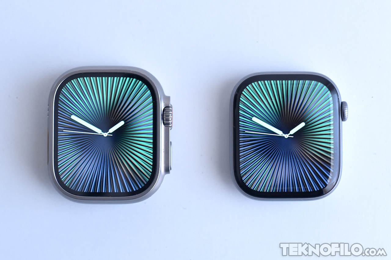 La pantalla del modelo de 46 mm es similar en tamaño a la del Apple Watch Ultra 3, aunque este último cuenta con marcos algo más estrechos. Además, mientras que el «Ultra» tiene la pantalla plana, el Apple Watch Series 11 posee una pantalla que se curva en los bordes.