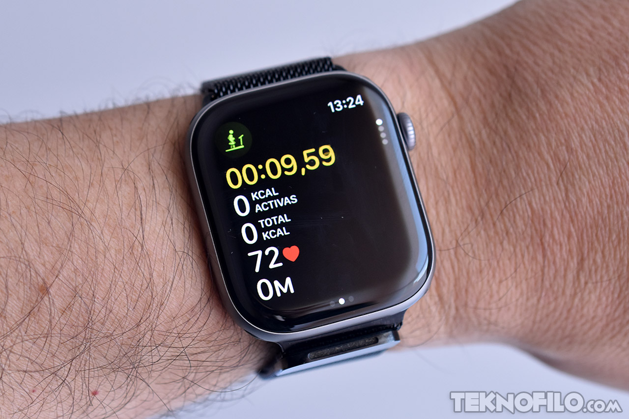 Otra característica destacada del Apple Watch Series 11 es el brillo de su pantalla, que alcanza los 2.000 nits, el doble que la generación anterior. Gracias a este valor de brillo, podemos utilizar el reloj perfectamente bajo la luz del sol. Por primera vez, el brillo puede bajar a 1 nit cuando se activa el modo Sueño para que no moleste.