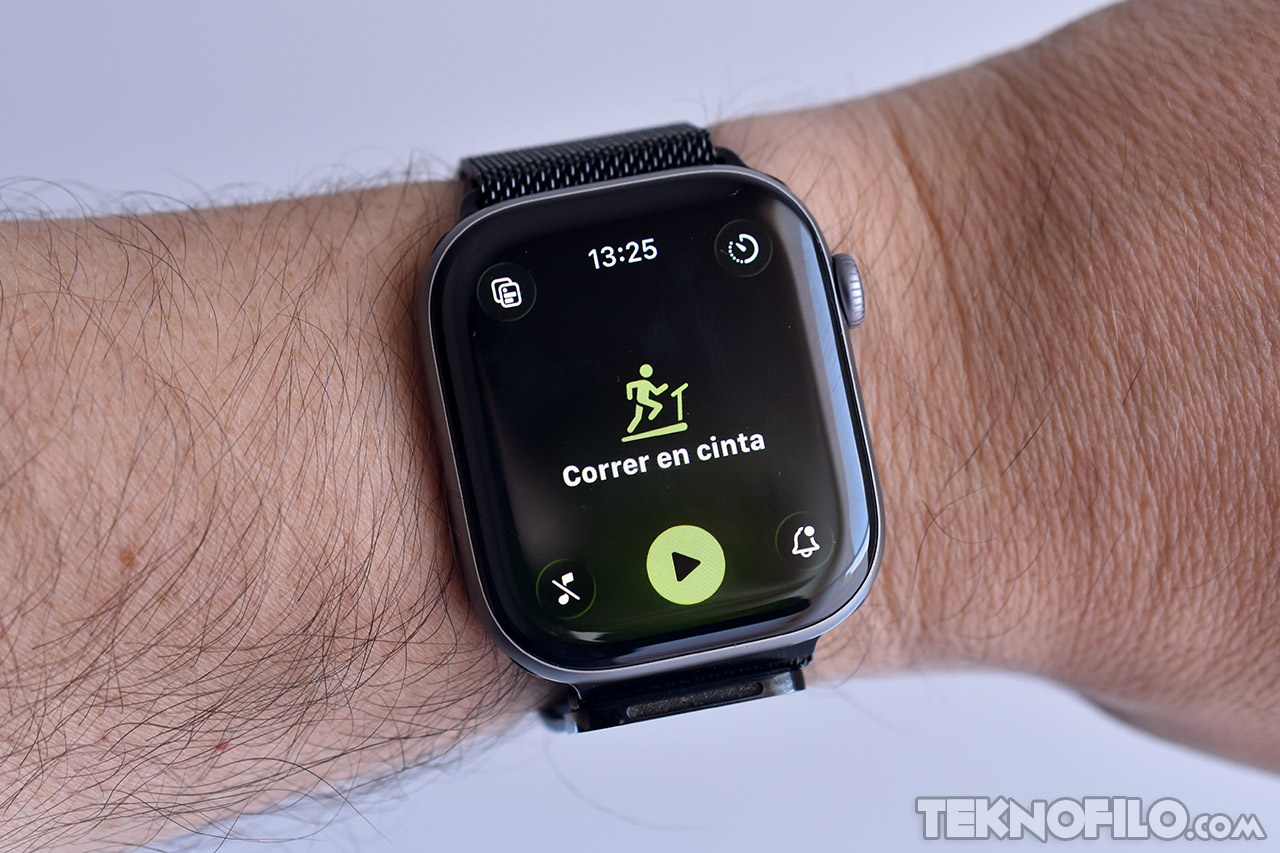 En mi experiencia, la batería aguanta un día y medio con una sola carga si no haces uso de los entrenamientos ni escuchas música. No obstante, si utilizas el Apple Watch Series 11 para salir a correr y escuchar tus playlists, las cifras se acercarán más a las 24 horas de autonomía de la hoja de especificaciones. En caso necesario, watchOS incluye una funcionalidad para extender la autonomía hasta 38 horas.