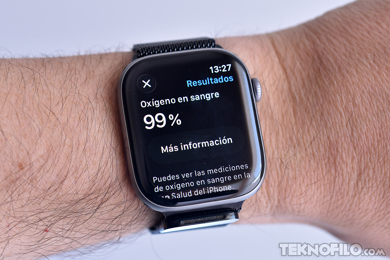 El Apple Watch Series 11 puede medir tu saturación de oxígeno bajo petición, así como de forma automática a lo largo del día. El proceso de medición lleva 15 segundos y es necesario que estés muy quieto, por lo que el momento idóneo para que el reloj lo mida de forma desatendida es mientras duermes.