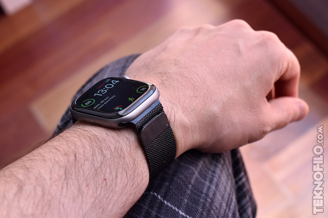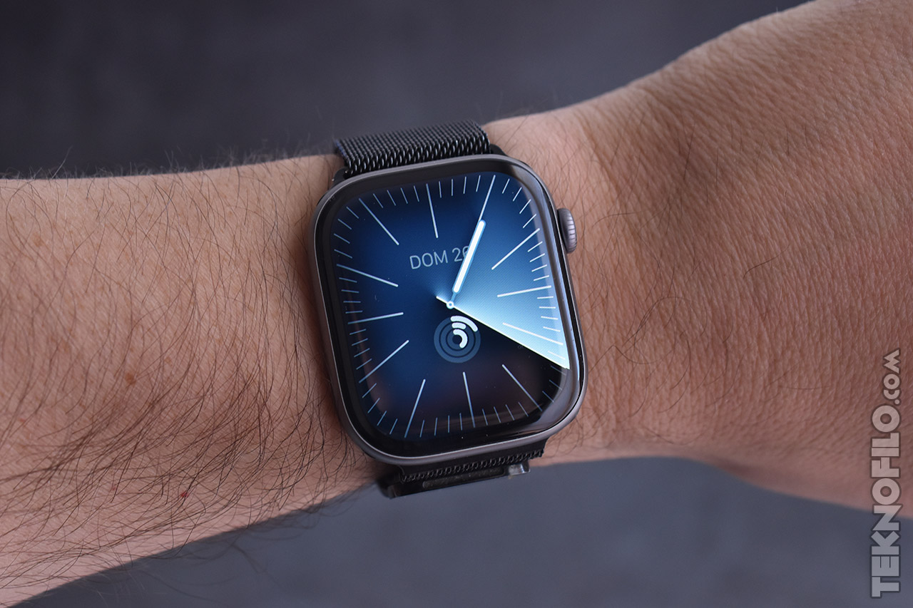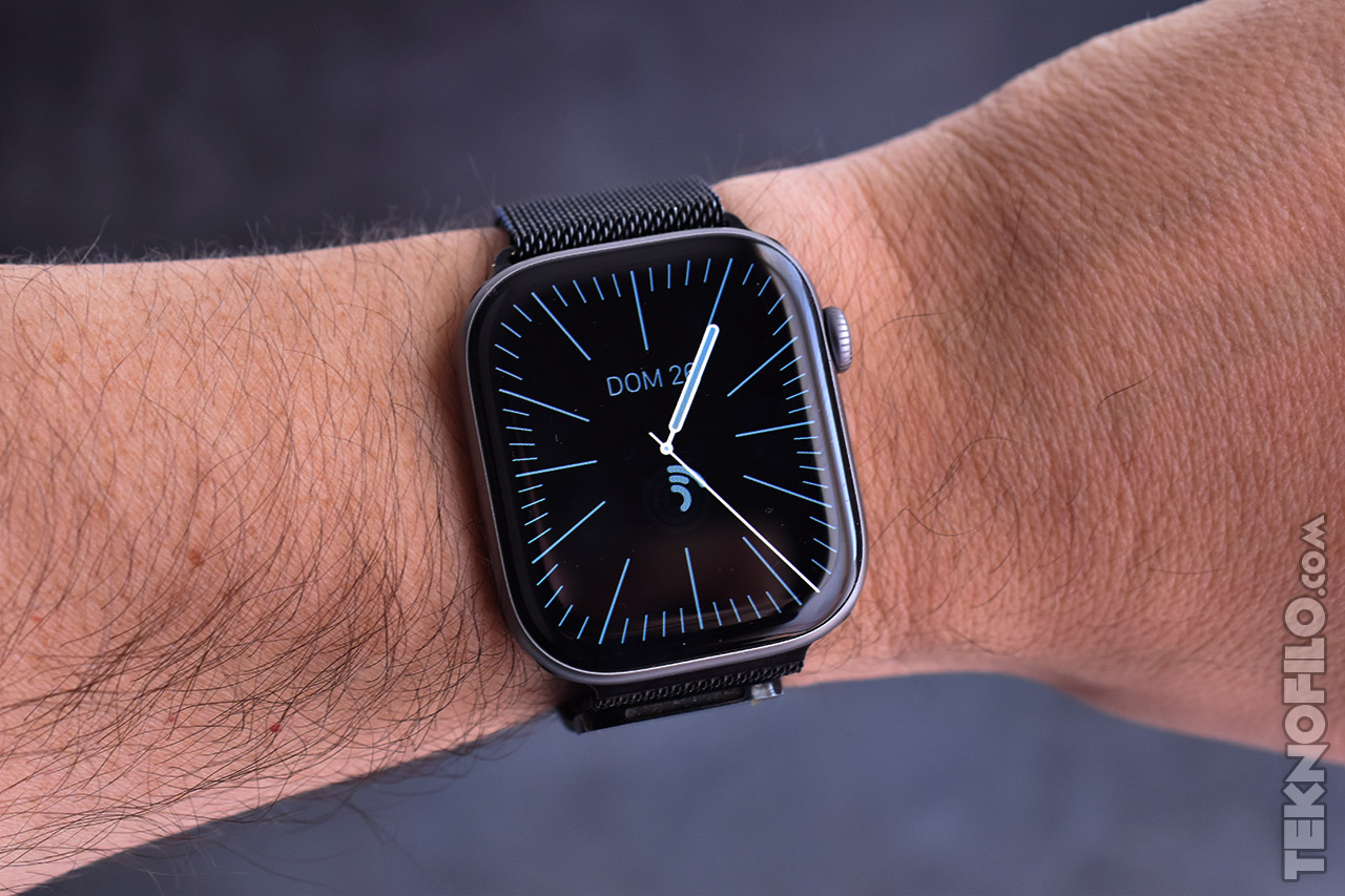 El modelo Apple Watch Series 11 que utilizo (y puedes ver en las fotografías) posee una caja de aluminio de 46 mm y lo utilizo habitualmente con la correa Milanese Loop (🛒 99€) de Apple.