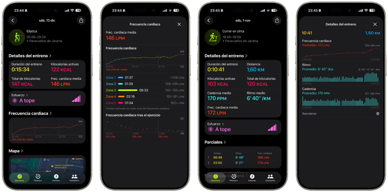 En deporte y salud, el Apple Watch Ultra 3 vuelve a destacar por la cantidad de métricas y herramientas disponibles. He encontrado muy útil la carga de entrenamiento para contextualizar semanas duras frente a semanas suaves, y las funciones de sueño (con tendencias y puntuación) son de las que te empujan a cuidarte sin darte cuenta. El hecho de poder exportar informes (como los relacionados con fibrilación auricular) también es un plus real para quien se tome en serio el seguimiento de salud, aunque siempre con la idea de que es una ayuda, no un sustituto médico.