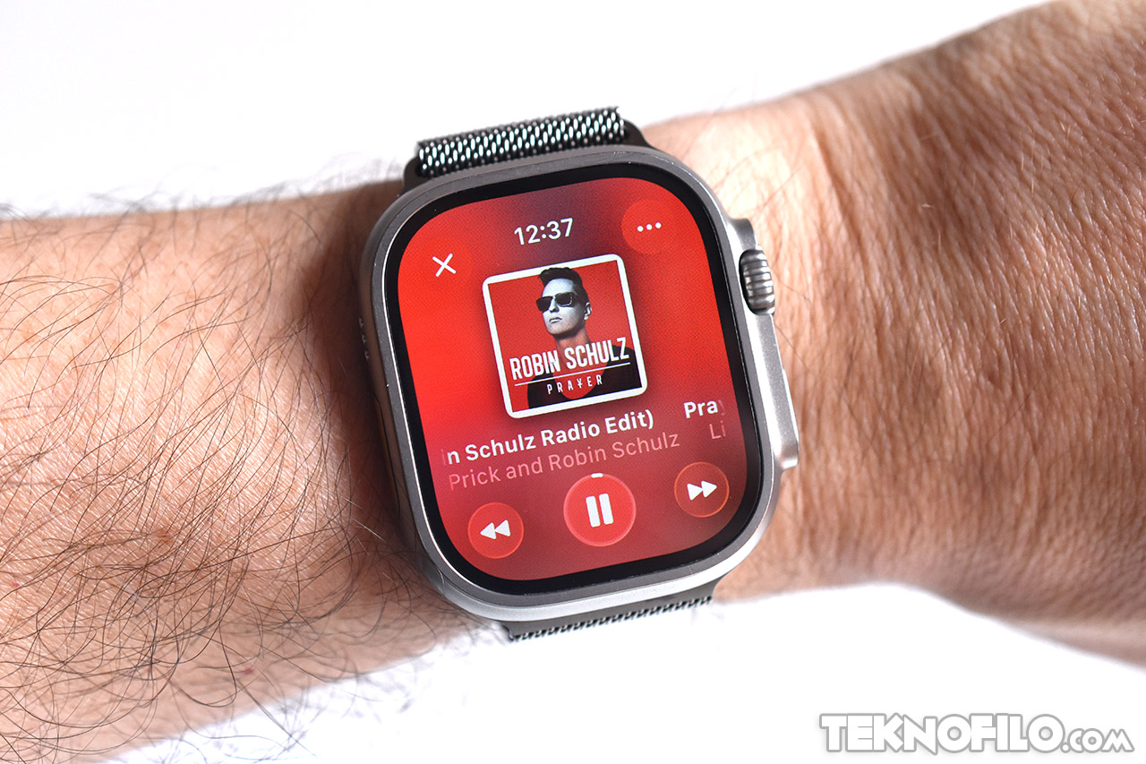 Además, cuando estás a menos de 4 metros de tu HomePod, el Apple Watch Ultra 3 activa la función En reproducción para un mejor control de audio, o proporciona sugerencias en el Grupo Inteligente para que reproduzcas música en el HomePod.