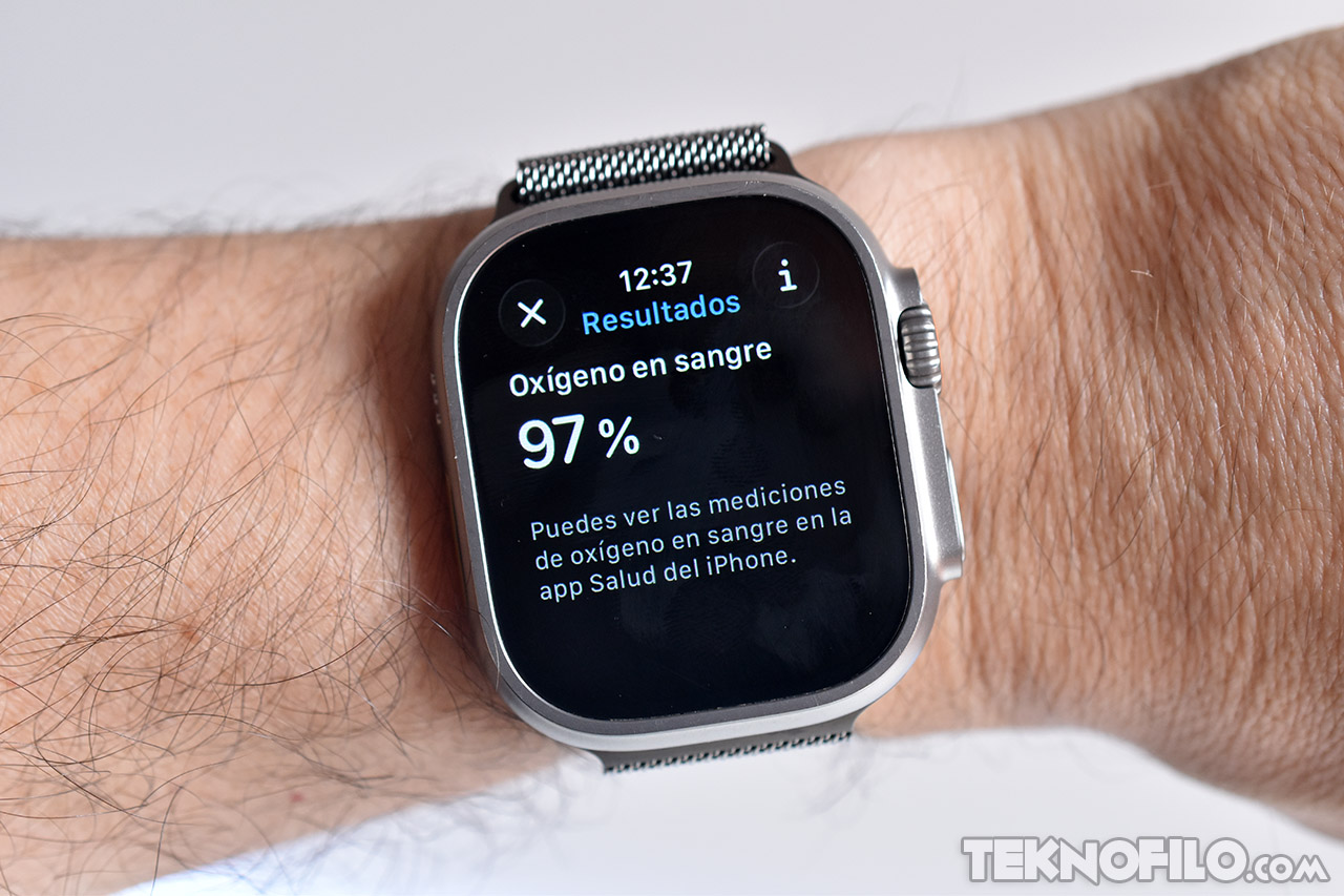 El reloj puede medir tu saturación de oxígeno bajo petición, así como de forma automática a lo largo del día. El proceso de medición lleva 15 segundos y es necesario que estés muy quieto, por lo que el momento idóneo para que el reloj lo mida de forma desatendida es mientras duermes.