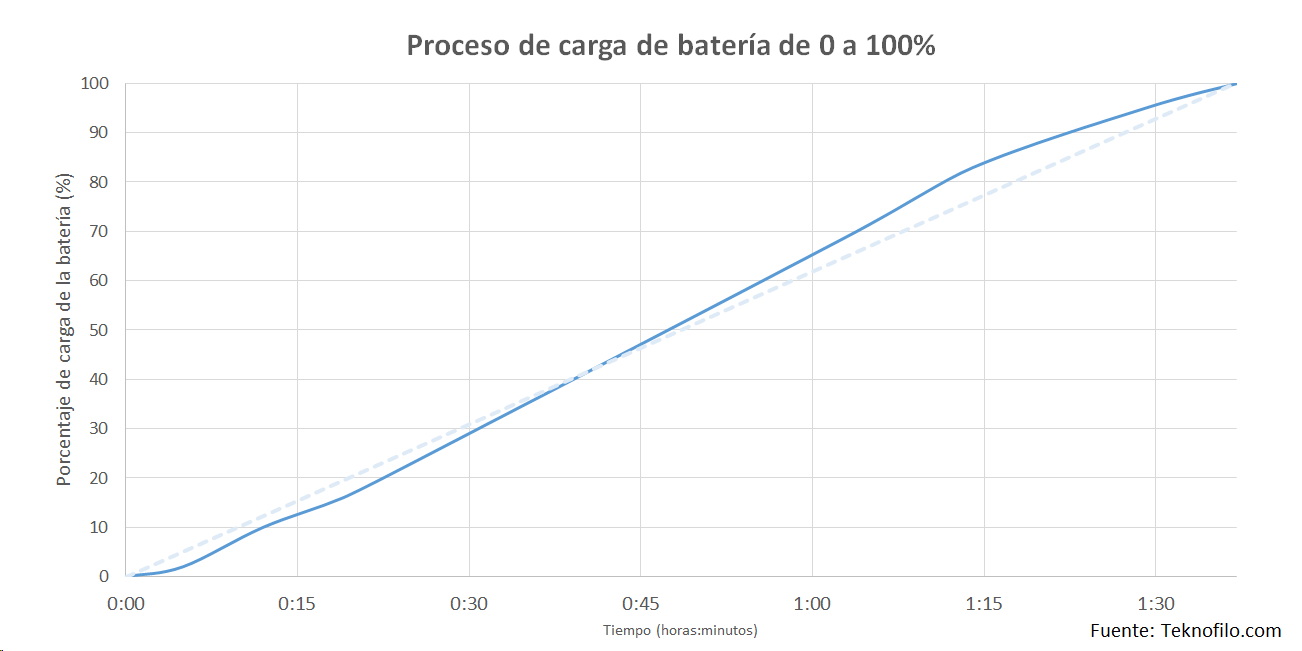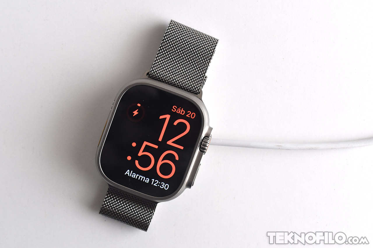 El proceso completo de carga tarda aproximadamente 1 hora y 37 minutos. Según Apple, con solo 15 minutos de carga consigues autonomía de 12 horas para un uso normal y, con solo 5 minutos de carga consigues autonomía para monitorizar el sueño durante 8 horas.