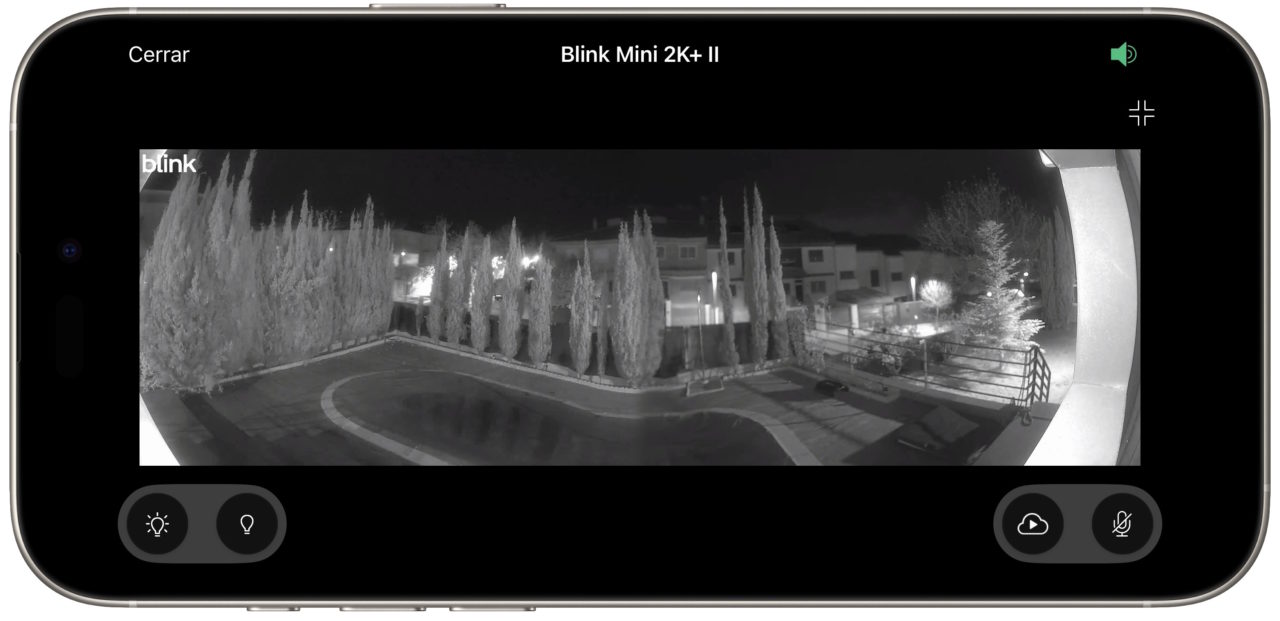 Blink Mini 2 incorpora un foco LED para permitir la captura de vídeo a color por la noche. Es posible configurar la intensidad de brillo de la luz, así que hacer que se encienda cuando se detecte movimiento.