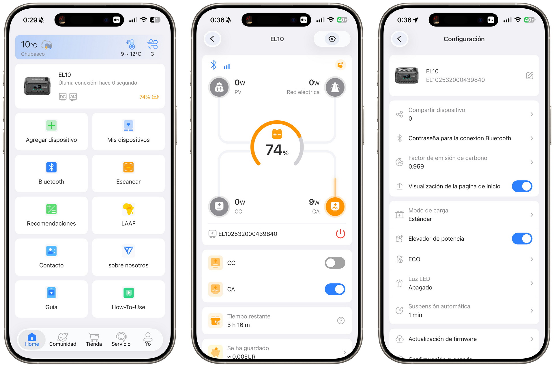 El emparejamiento entre la app y la estación se realiza mediante Bluetooth, por lo que para poder utilizar la app es necesario que estés a una distancia de unos pocos metros. Esto también significa que, si te alejas, no podrás acceder a los parámetros de tu estación de energía de manera remota a través de Internet.