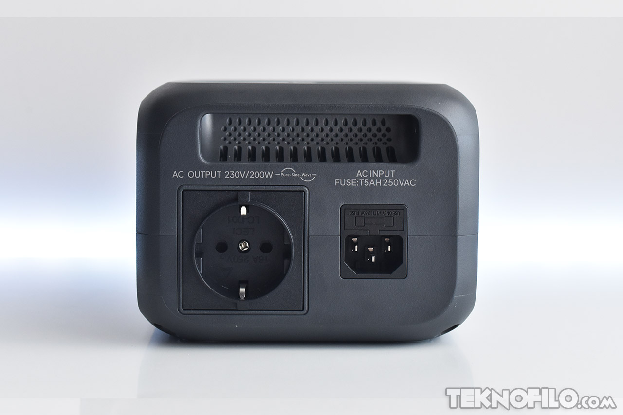 La estación de energía puede entregar una potencia total de 200 vatios a través de sus distintos puertos de salida. No es una cantidad muy elevada, pero es suficiente para un portátil de gaming (150W), un ventilador (10W), una antena Starlink (30W), una neverita (60W), etc.
