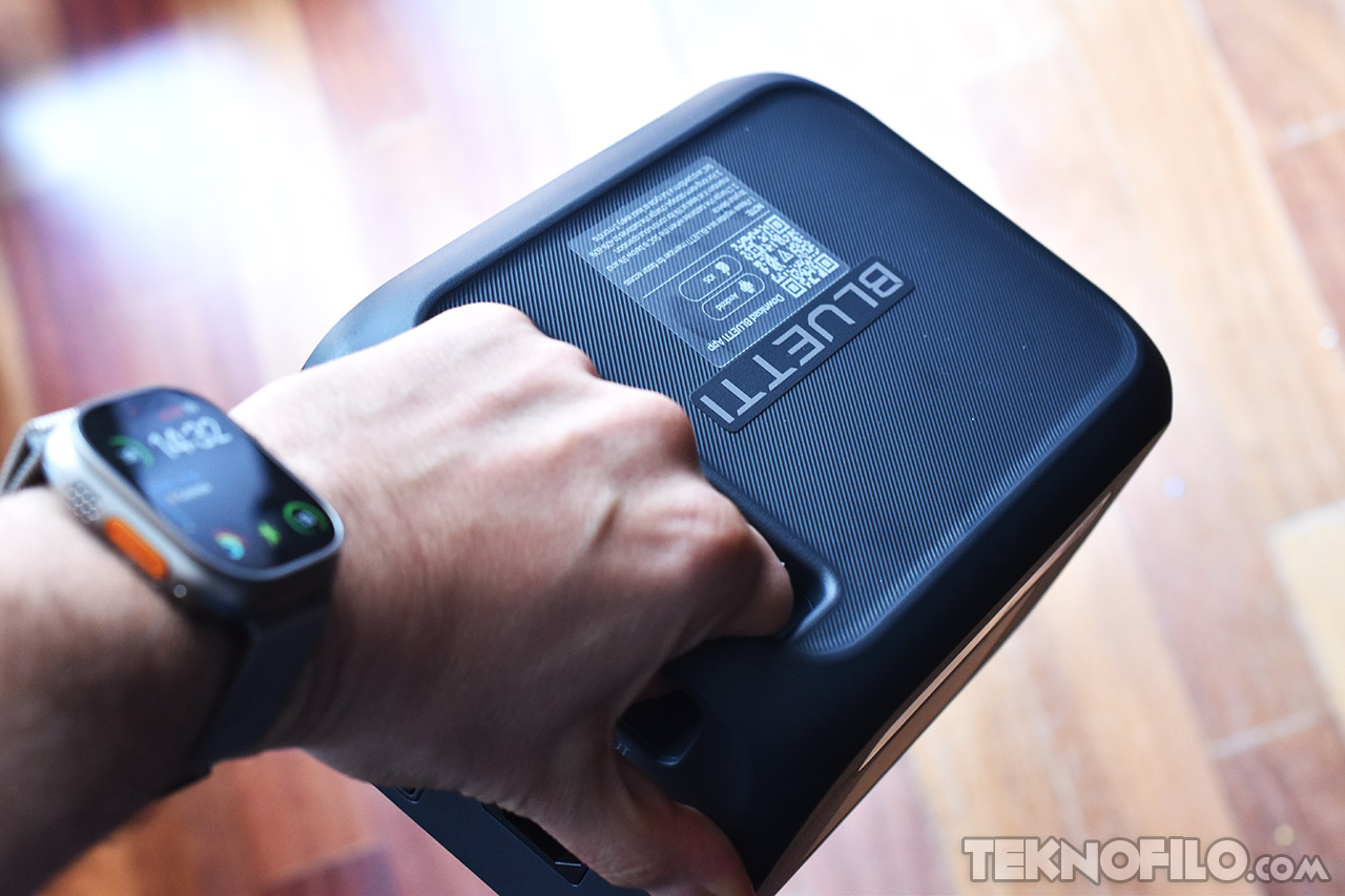 La estación incorpora un asa a un lado para que sea fácil agarrarla. Se nota robusta y no hay riesgo de que se rompa por el uso.