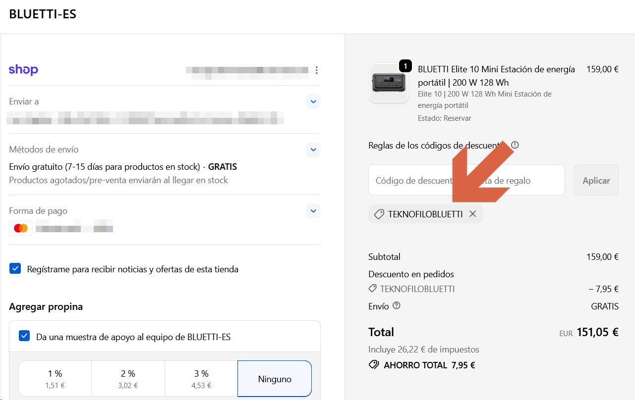 La estación de energía BLUETTI Elite 10 tienen un precio de 229€, pero ahora está rebajado a 159€, que se convierten en 151,05€ con nuestro código de descuento del 5% exclusivo teknofilobluetti. Durante el Black Friday, BLUETTI ofrecerá hasta un 73% de descuento.
