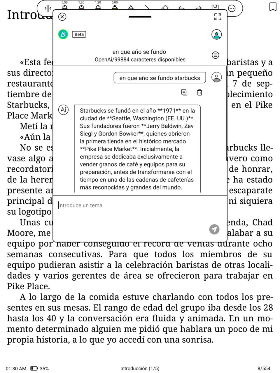 El Asistente con IA se convierte en un apoyo muy útil para el día a día, especialmente al enfrentarse a contenidos complejos. Resulta eficaz a la hora de entender terminología técnica, interpretar frases densas y ofrecer explicaciones rápidas y claras. Es una función pensada para aprender y trabajar de forma más eficiente, especialmente en contextos académicos o profesionales.
