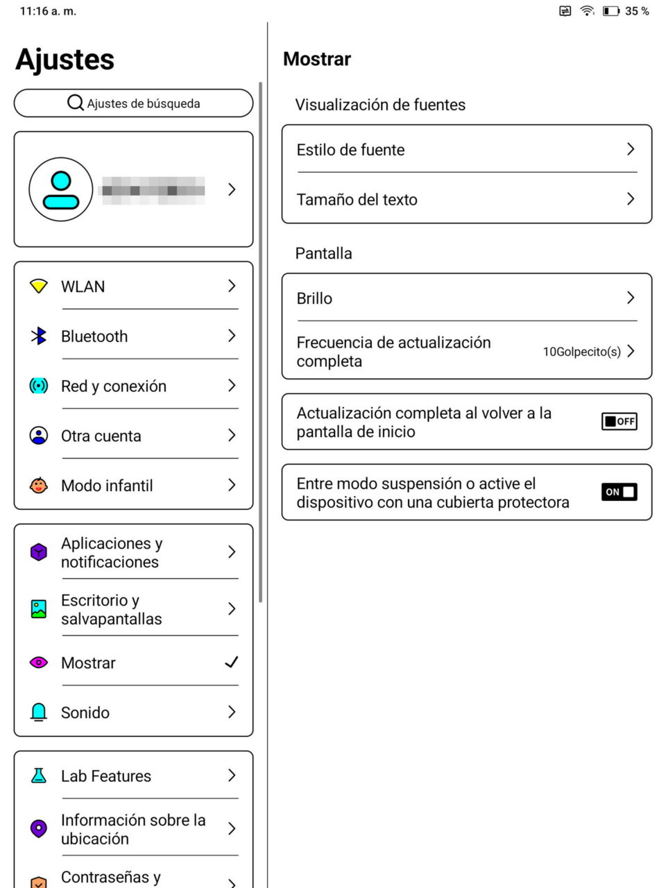 - Múltiples opciones de refresco de pantalla, incluso por app, para diferentes casos de uso. Nueva opción de refresco suave para aplicaciones con scroll (navegador web o incluso vídeo)