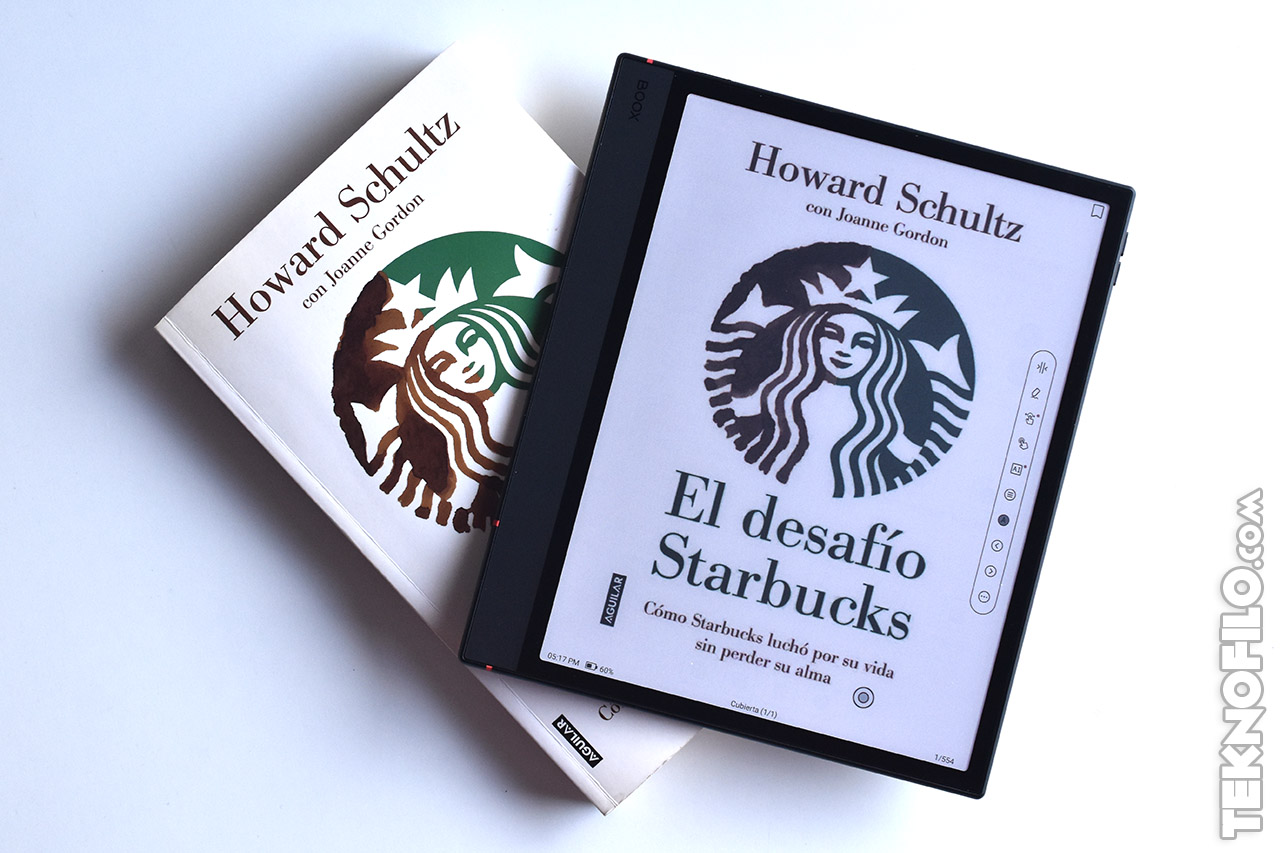 Detalle de una página en el BOOX Note Air5 C y en un libro real