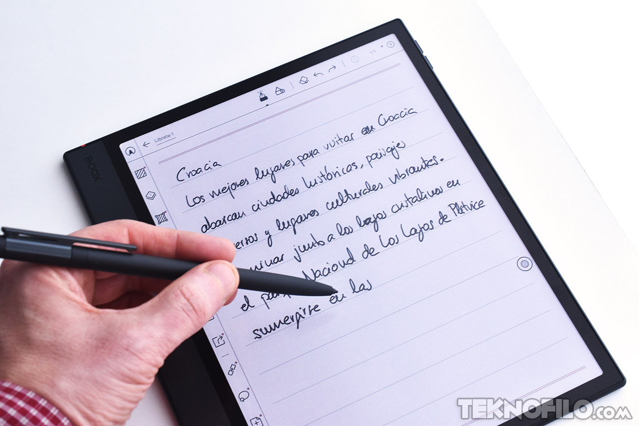 Con el lápiz incluido, la escritura es fluida. El lápiz se mueve sin esfuerzo por la pantalla, con un retardo visible, pero mínimo. La experiencia es cercana a la de escribir con lápiz y papel.