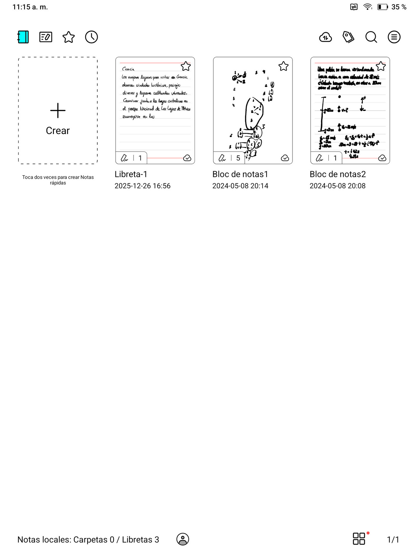 BOOX Note Air5 C permite tomar notas manuscritas sobre la pantalla utilizando el lápiz, como si fuera una hoja de papel. Existen diversas plantillas de cuadernos donde elegir, tanto con páginas en blanco como con cuadrículas, líneas horizontales, recuadros, etc.