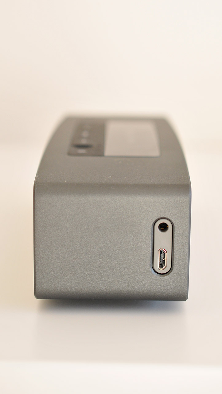 En un lateral encontramos un conector micro USB para actualizar el software del altavoz y cargar el altavoz cómodamente si los transportamos sin el cargador de Bose.