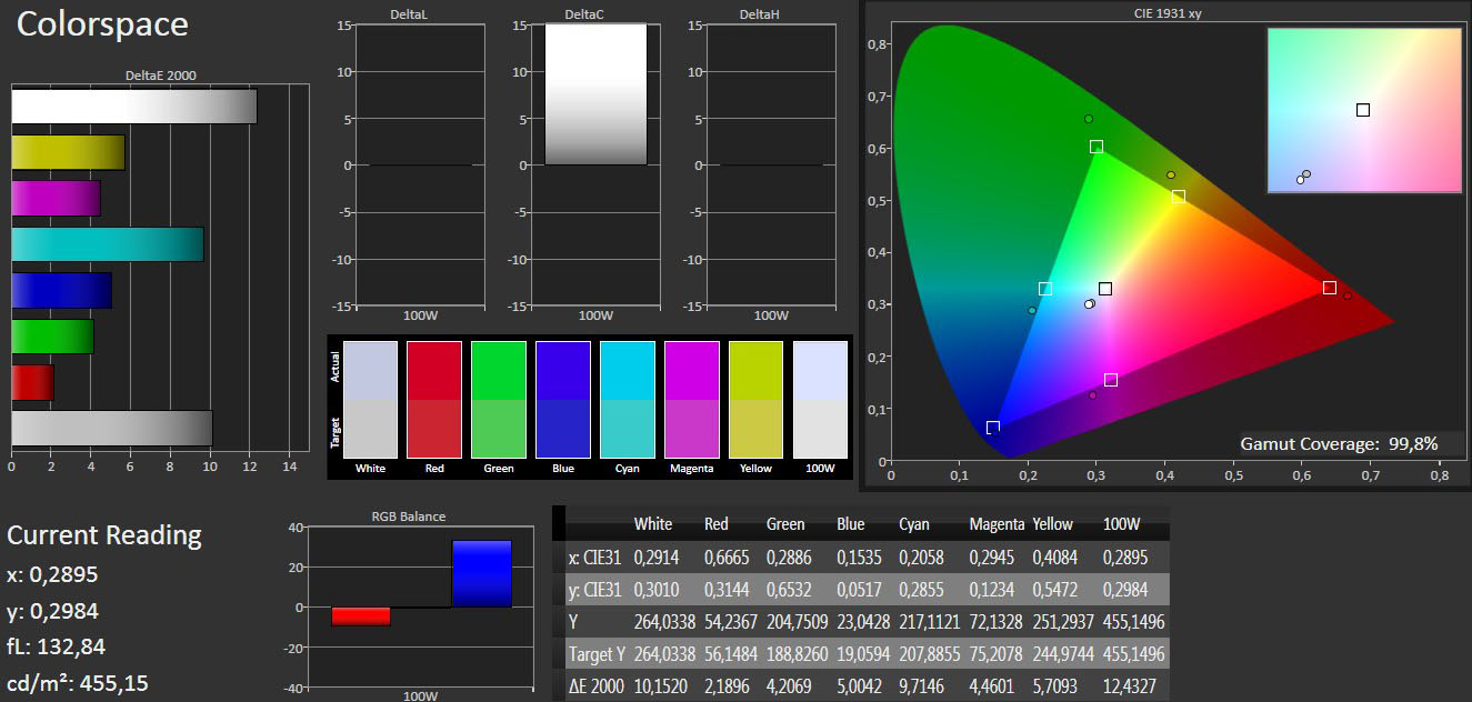 Para analizar la calidad de la pantalla hemos realizado diversas pruebas con el software profesional CalMAN Ultimate y un colorímetro X-Rite i1Display Pro.