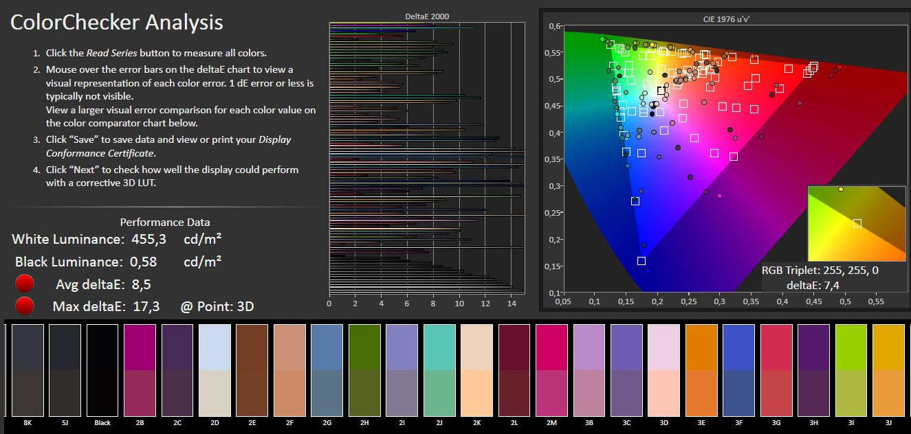 Ahora bien, el panel tiende a sobresaturar los colores y por ello el error medio en la fidelidad de los colores es elevado.
