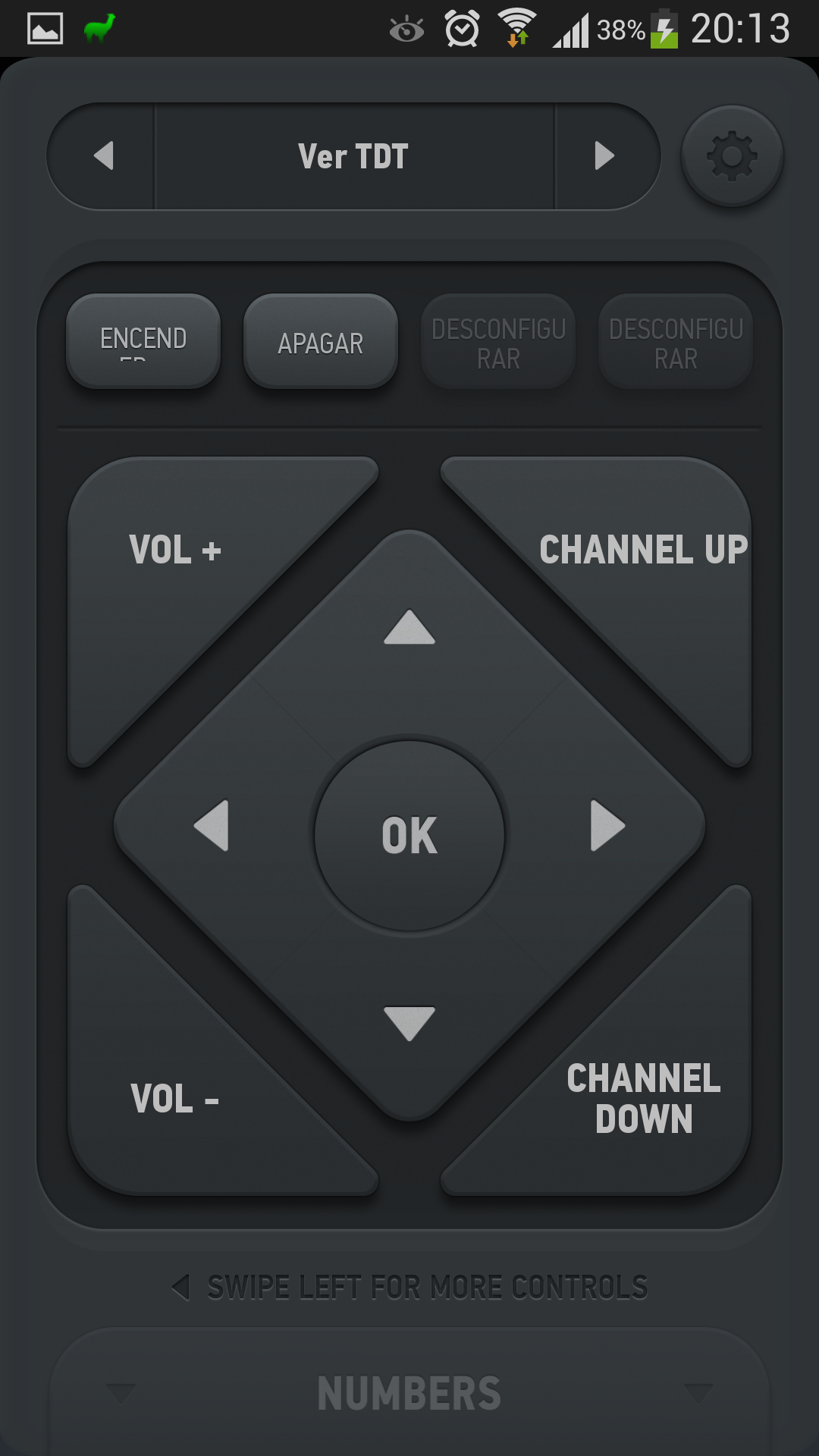 Para empezar a utilizar un mando a distancia concreto, basta con pulsar en Lista de Controles Remotos y seleccionar el mando que queremos utilizar. A partir de ahí obtenemos el interfaz del mando, que en ocasiones puede ocupar varias páginas si posee muchas funciones.