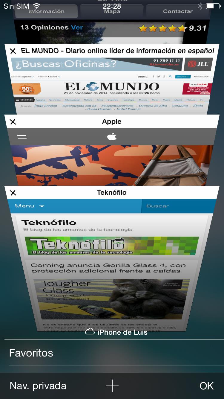 El único aspecto que no nos gusta demasiado es que, con bastante frecuencia, al abrir Safari las pestañas de navegación vuelven a cargarse como si el teléfono no fuera capaz de mantener las páginas abiertas en memoria. Desconocemos si puede estar motivado porque solo posee 1 GB de RAM, o si es un comportamiento normal de iOS.