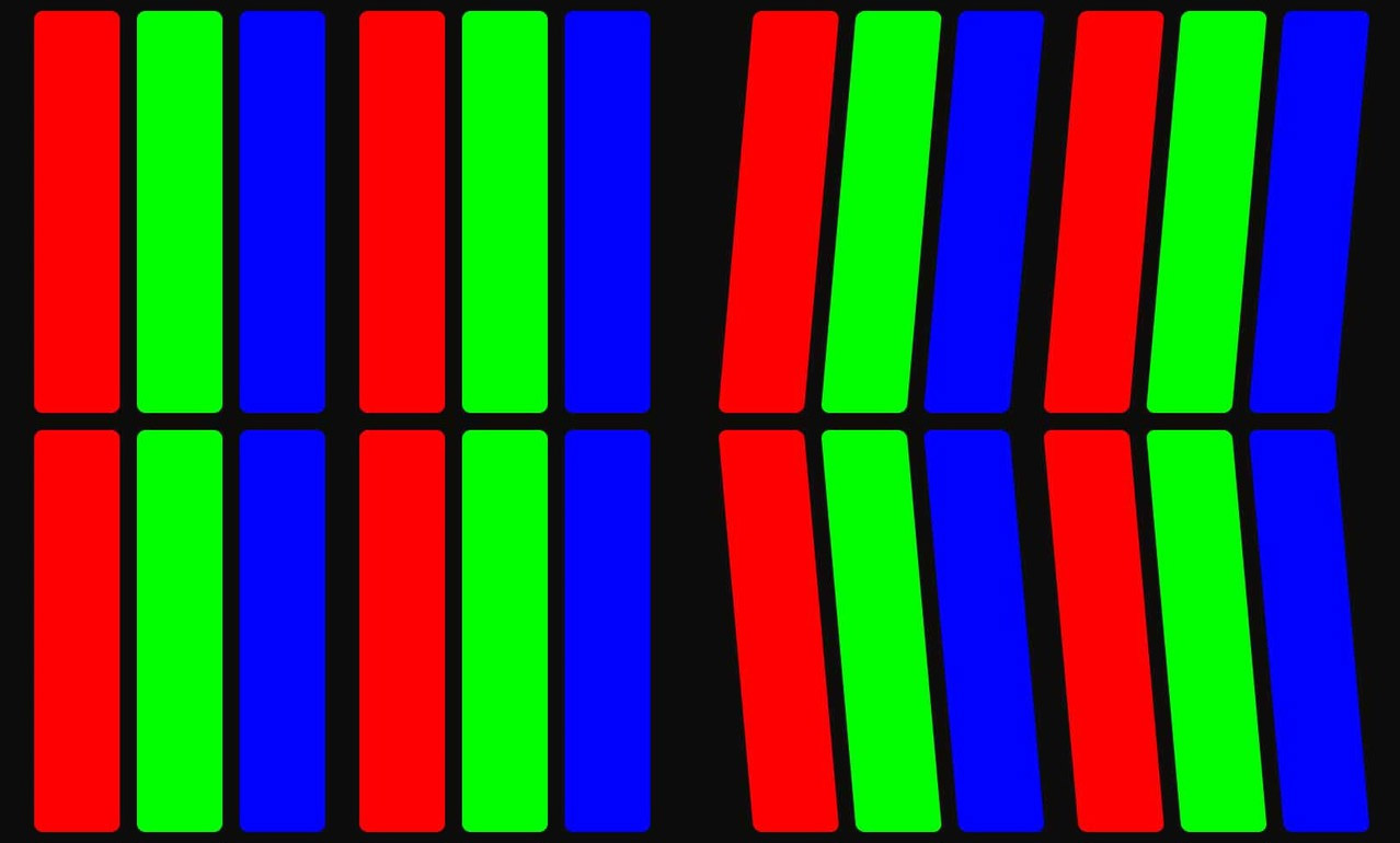 Este patrón está diseñado para compensar la falta de uniformidad en la iluminación que se produce debido a que cada subpíxel se ve con un ángulo diferente, lo que causa cambios en el color y pérdida de contraste.