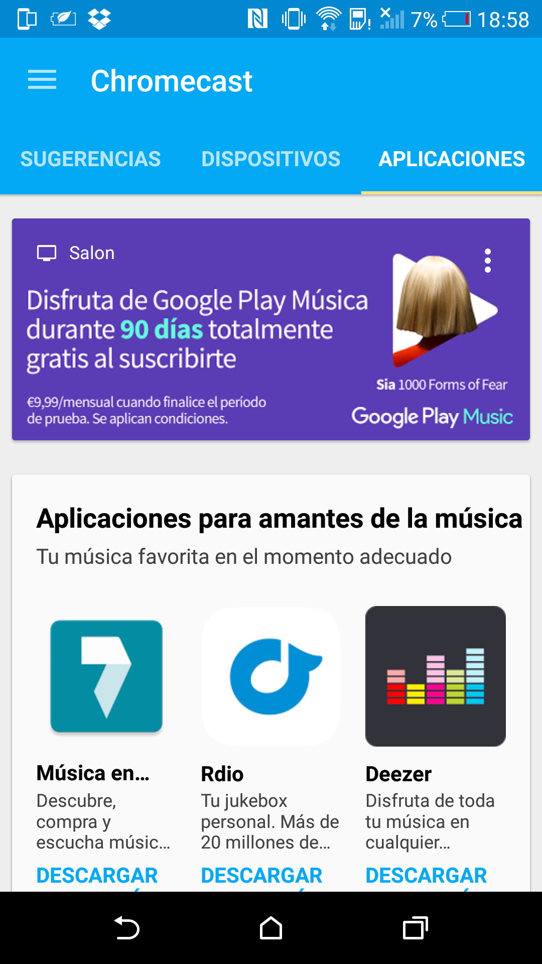Un aspecto que merece la pena aclarar es que, en la mayoría de los casos, Chromecast no está recibiendo los contenidos directamente de tu teléfono sino que es capaz de identificar cuál es la fuente de dicho contenido y obtenerlo desde ahí. De esta forma el teléfono no gasta batería ni está ocupado enviando datos.