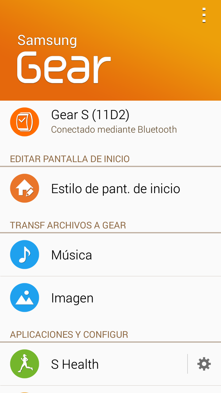 También podemos utilizar Gear Manager para transferir ficheros de música e imágenes al reloj, así como ajustar la frecuencia con la cual se transfieren datos de salud desde Gear al teléfono.