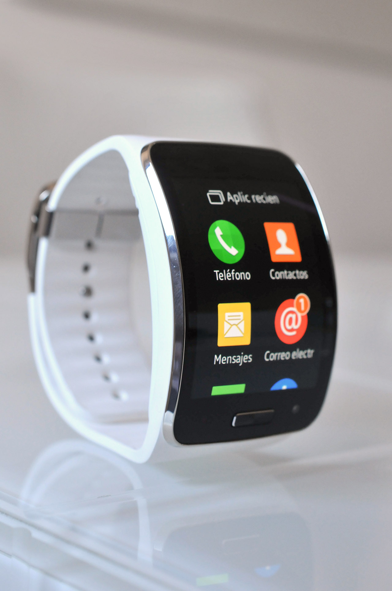 Mientras que otros relojes inteligentes como el Moto 360 tratan de ocultar que son dispositivos electrónicos y se mimetizan con los relojes tradicionales, este no es el caso del Gear S, que no busca pasar desapercibido.