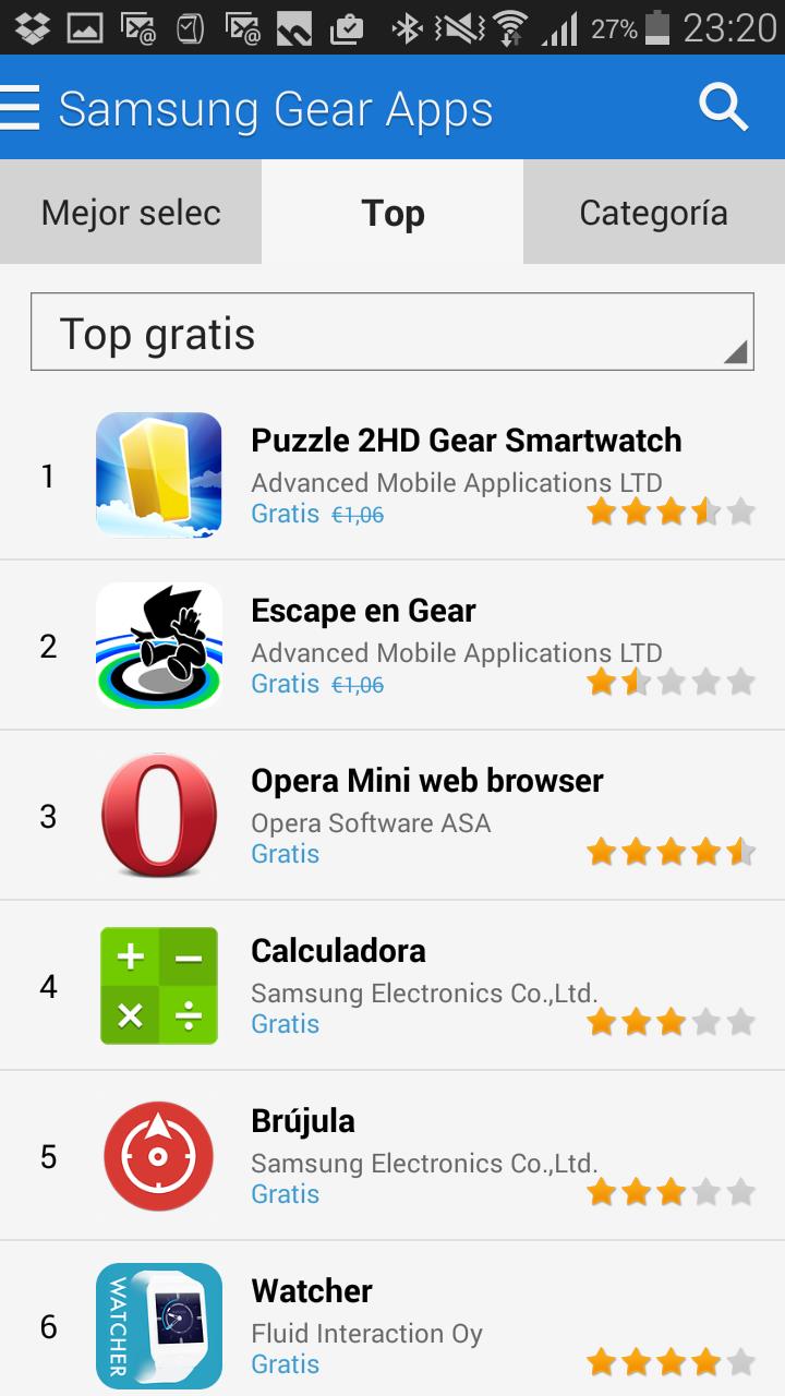 La aplicación Gear Manager es necesaria para emparejar mediante Bluetooth nuestro teléfono Samsung con el Gear S, así como para actualizar el software del reloj si es necesario. Además ofrece varias opciones de aplicaciones y ajustes, como veremos a continuación.