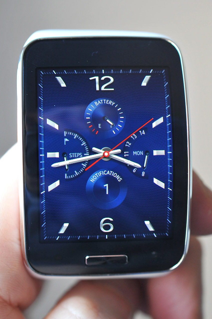 Samsung no es un nuevo jugador en el terreno de los relojes inteligentes, y eso se nota. A la hora de diseñar el Gear S, la compañía ha sabido tomar lo mejor de los anteriores modelos y ha eliminado funcionalidades absurdas, como la cámara de fotos integrada en el reloj.