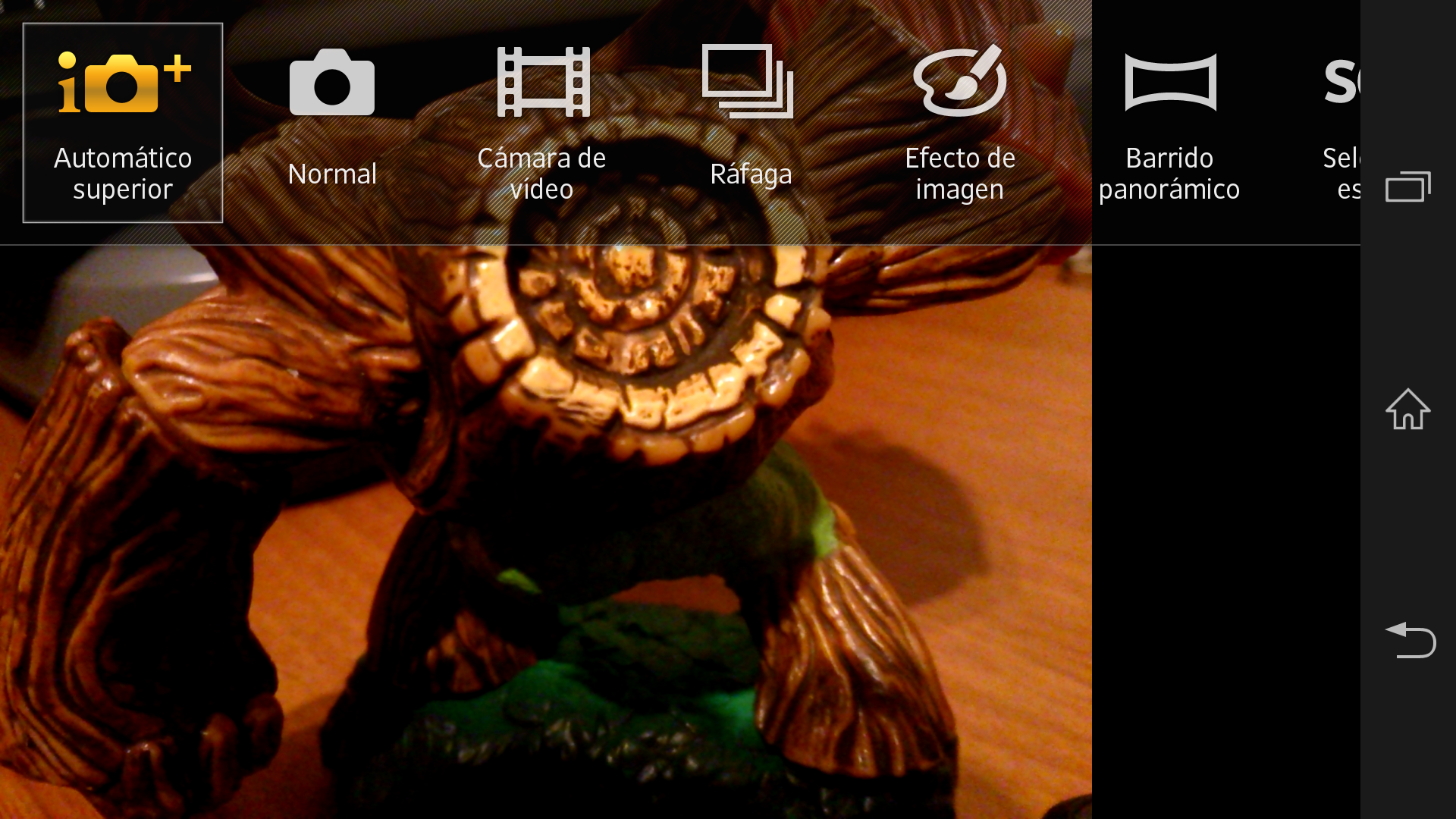 El Sony Xperia Z permite escoger diversos modos: Automático superior (desconocemos por qué no se llama simplemente automático), normal, cámara de vídeo, ráfaga, efecto de imagen, barrido panorámico, selección escena, cámara frontal y barrido frontal.