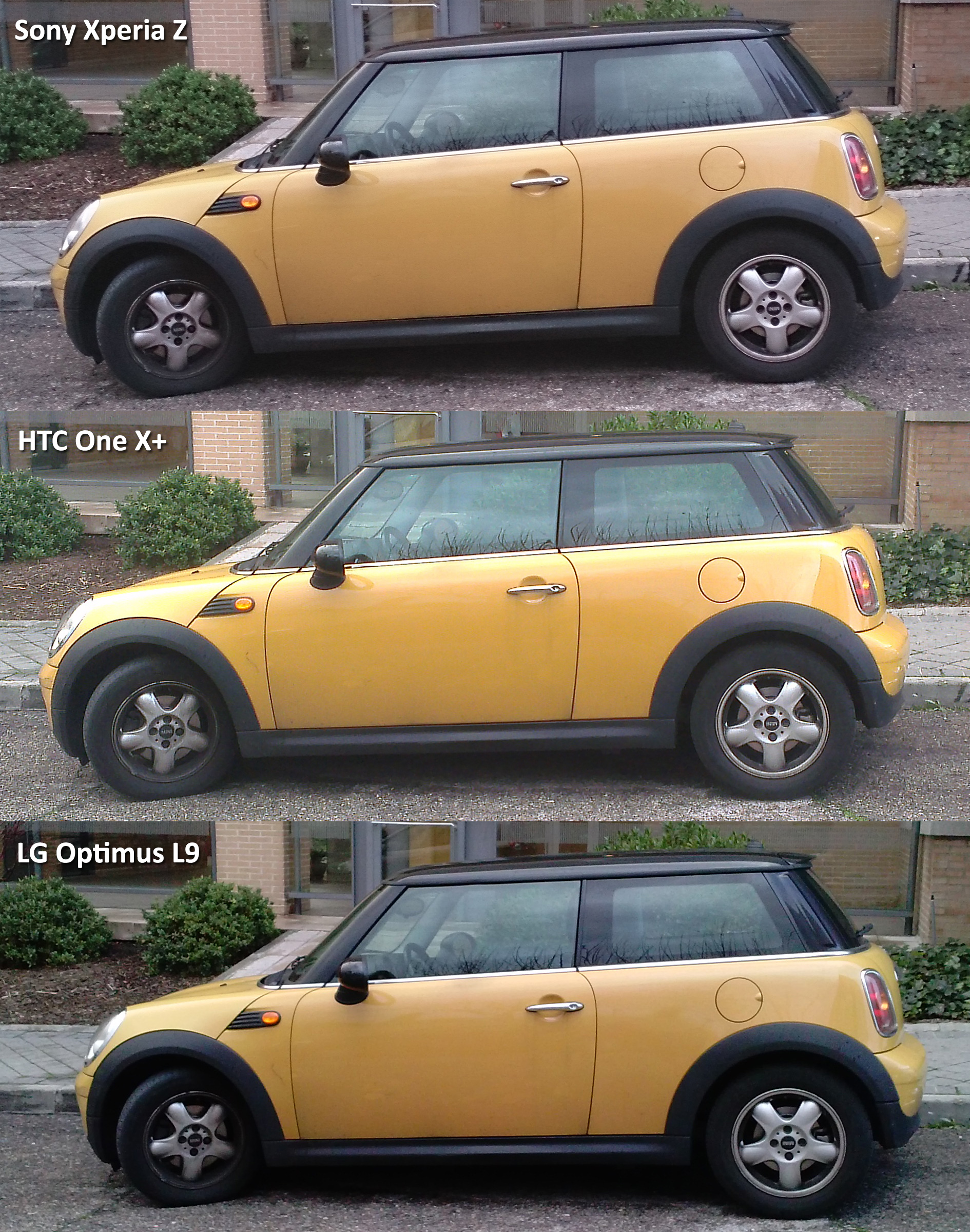 Hemos incluido un conjunto de comparativas de fotografías tomadas por el Sony Xperia Z, el HTC One X+ y el LG Optimus L9. Pulsando encima de ellas se accede a la comparativa a tamaño original.