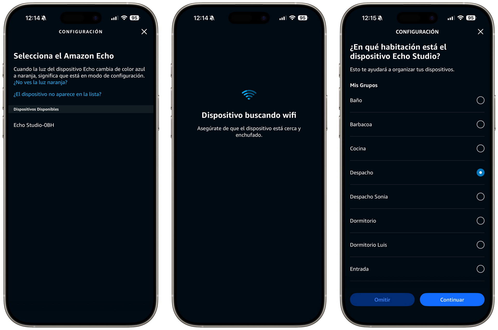 El proceso de configuración es realmente sencillo, ya que basta con abrir la app Alexa para que esta detecte que el Echo Studio está cerca y comience a configurarlo.