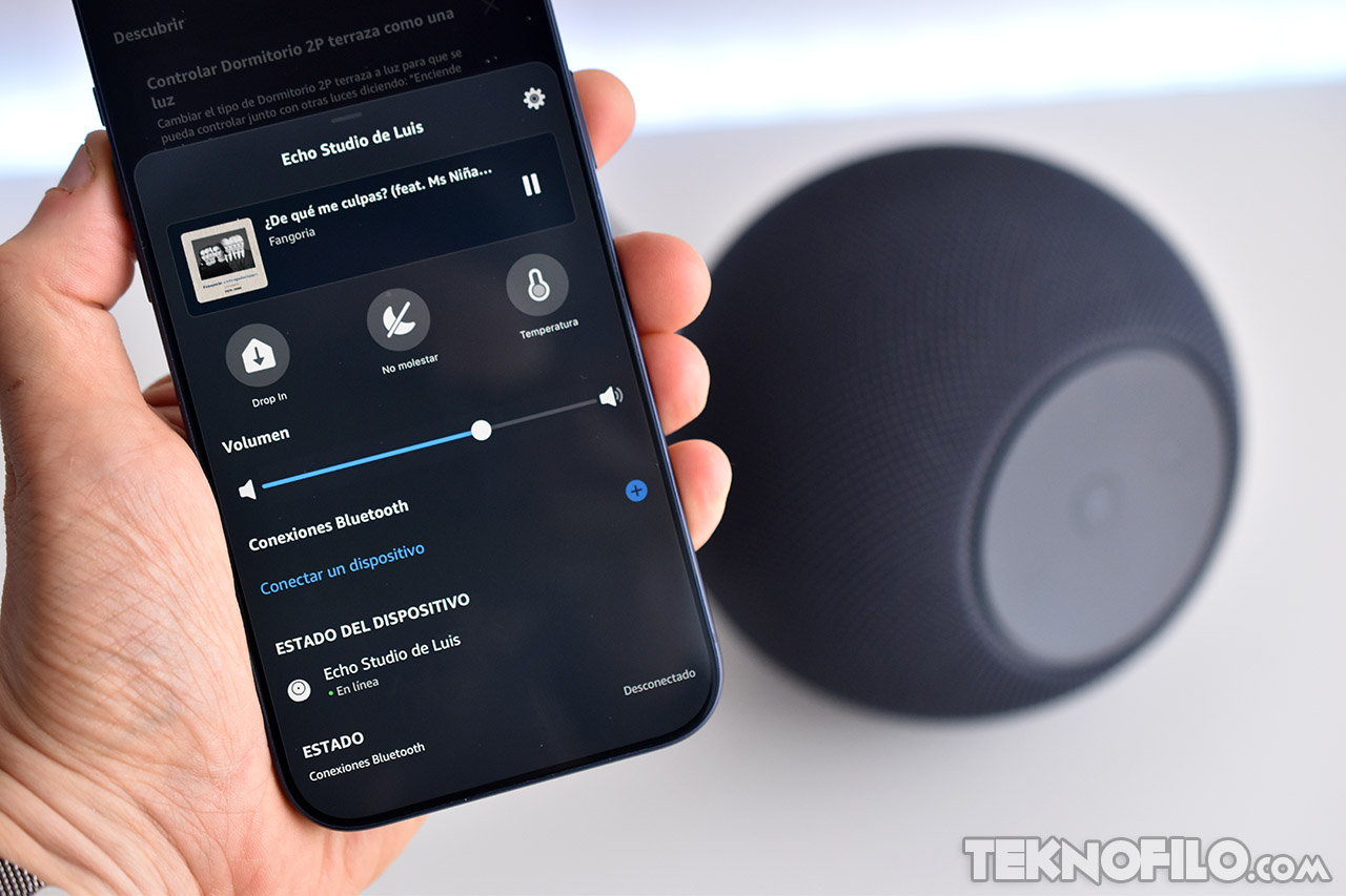 En el apartado de funciones inteligentes, el Echo Studio se beneficia del nuevo chip Amazon AZ3 Pro y de la tecnología Omnisense, que añade detección de presencia, temperatura y gestos táctiles. Esto abre la puerta a automatizaciones avanzadas con Alexa, como rutinas que ajustan la música o la iluminación según si hay alguien en la habitación.