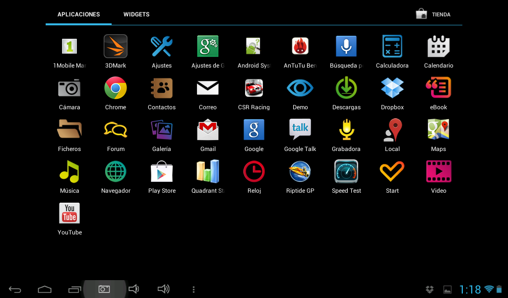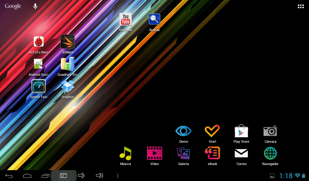 Por suerte Energy Sistem no ha llenado este tablet de aplicaciones de terceros de dudosa utilidad. Esto demuestra un gran respeto por el usuario, ya que en otros tablets es habitual encontrar gran cantidad de productos instalados (juegos, versiones de prueba de aplicaciones de pago, etc.) que ocupan un espacio precioso y no aportan ningún valor. Aplaudimos por tanto la iniciativa de Energy Sistem de dejar al usuario que instale lo que él considere adecuado.