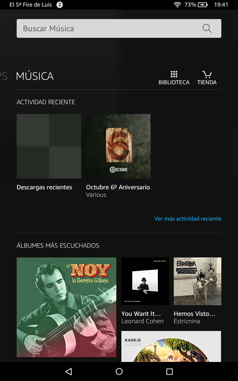 Adicionalmente es posible reproducir música desde la nube, tanto comprando en la tienda de música de Amazon como utilizando el servicio Amazon Music, que permite importar nuestra colección de música del ordenador para que esté disponible desde cualquier lugar.