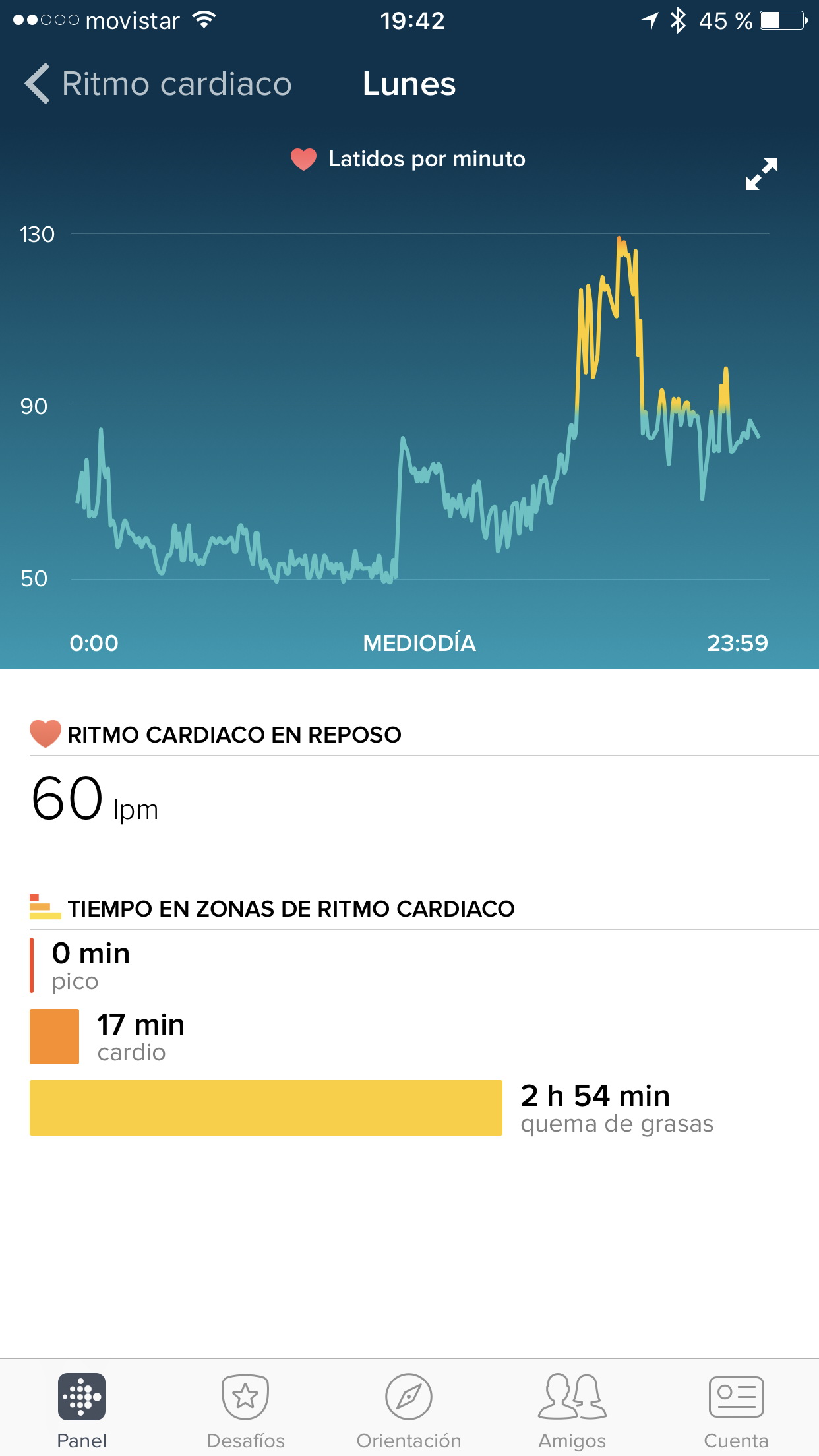 Además, si llevas la pulsera cuando duermes, obtienes la medida del ritmo cardíaco en reposo, que según los especialistas es una medida representativa de la salud de tu corazón.