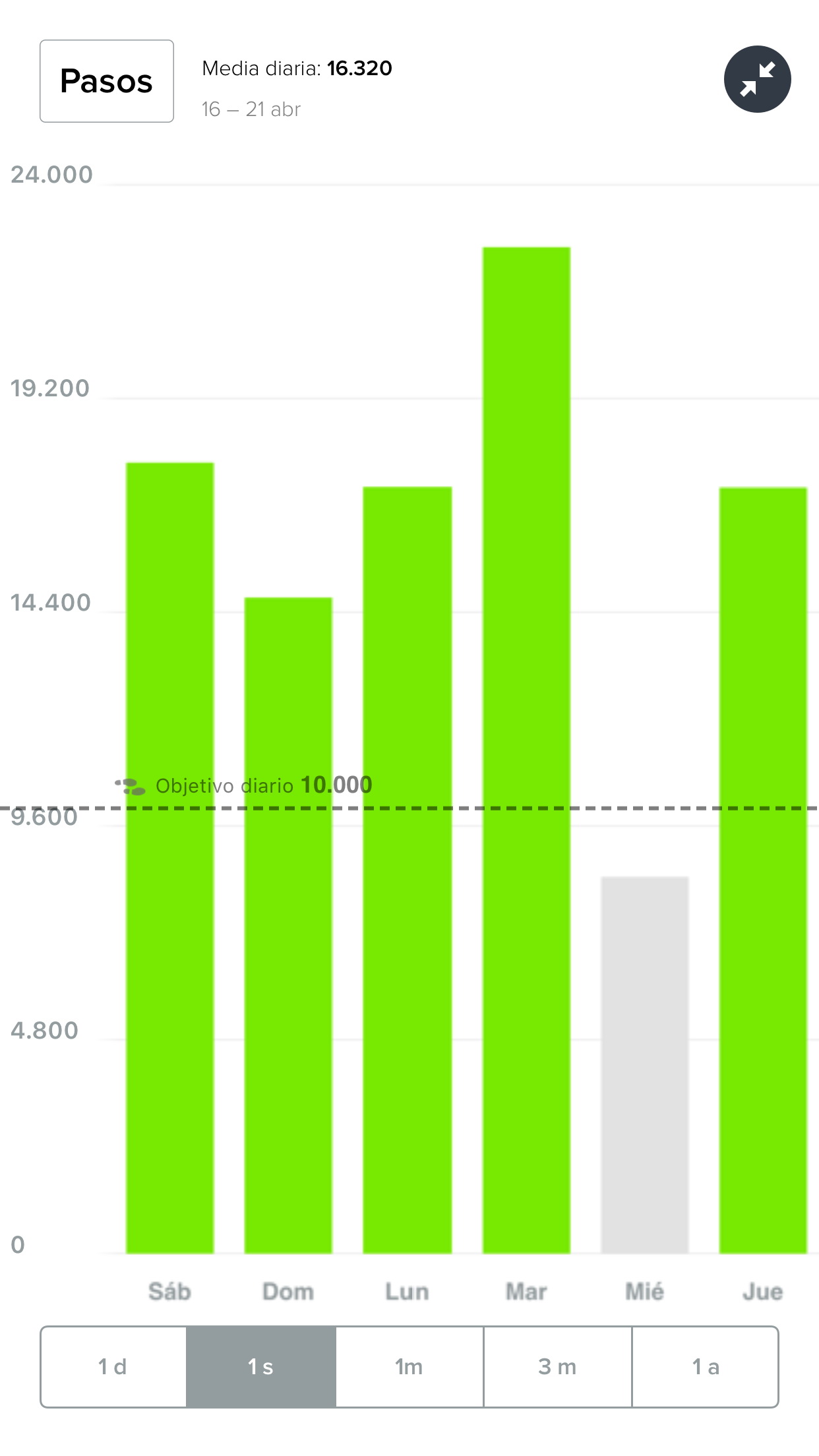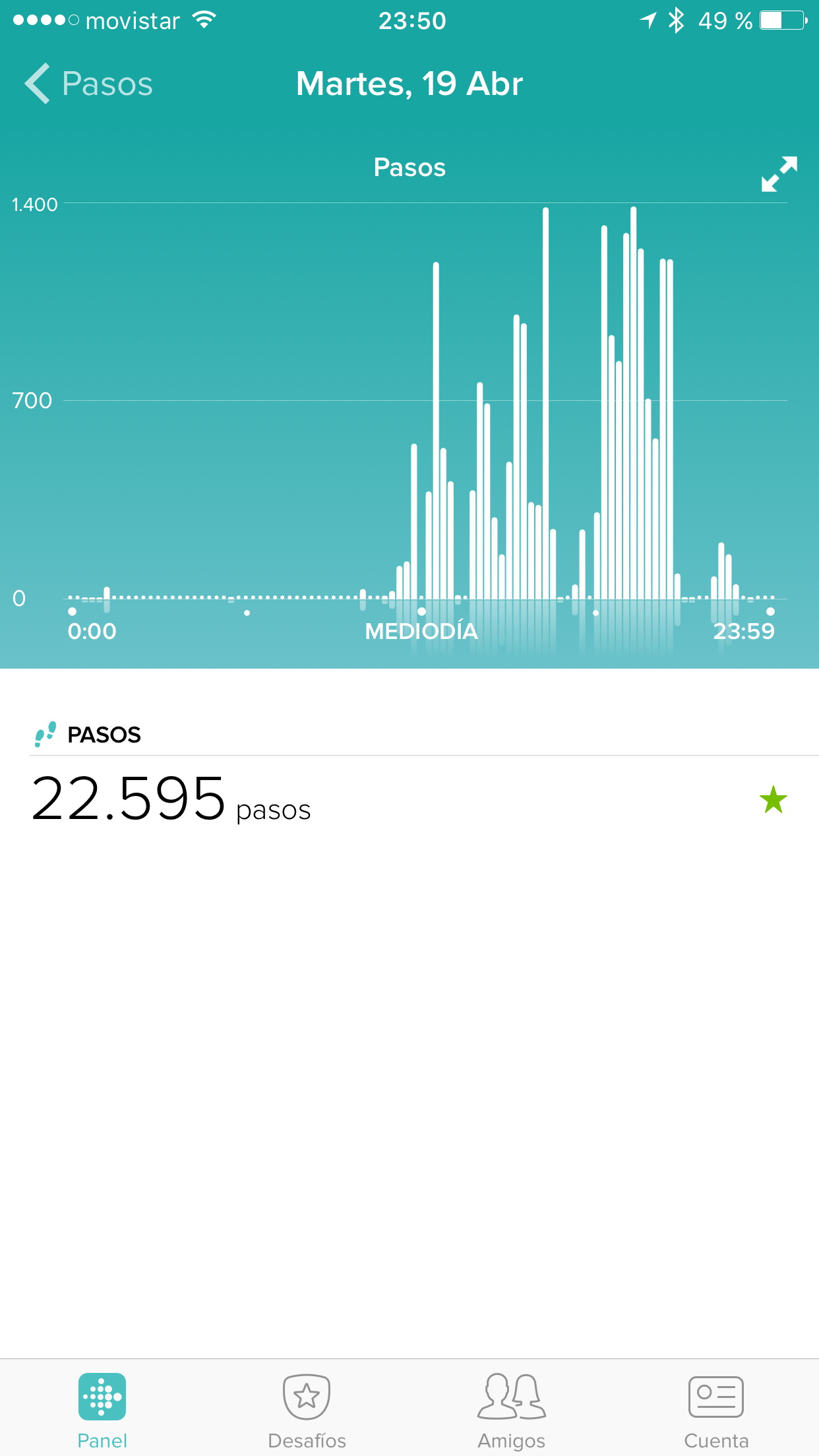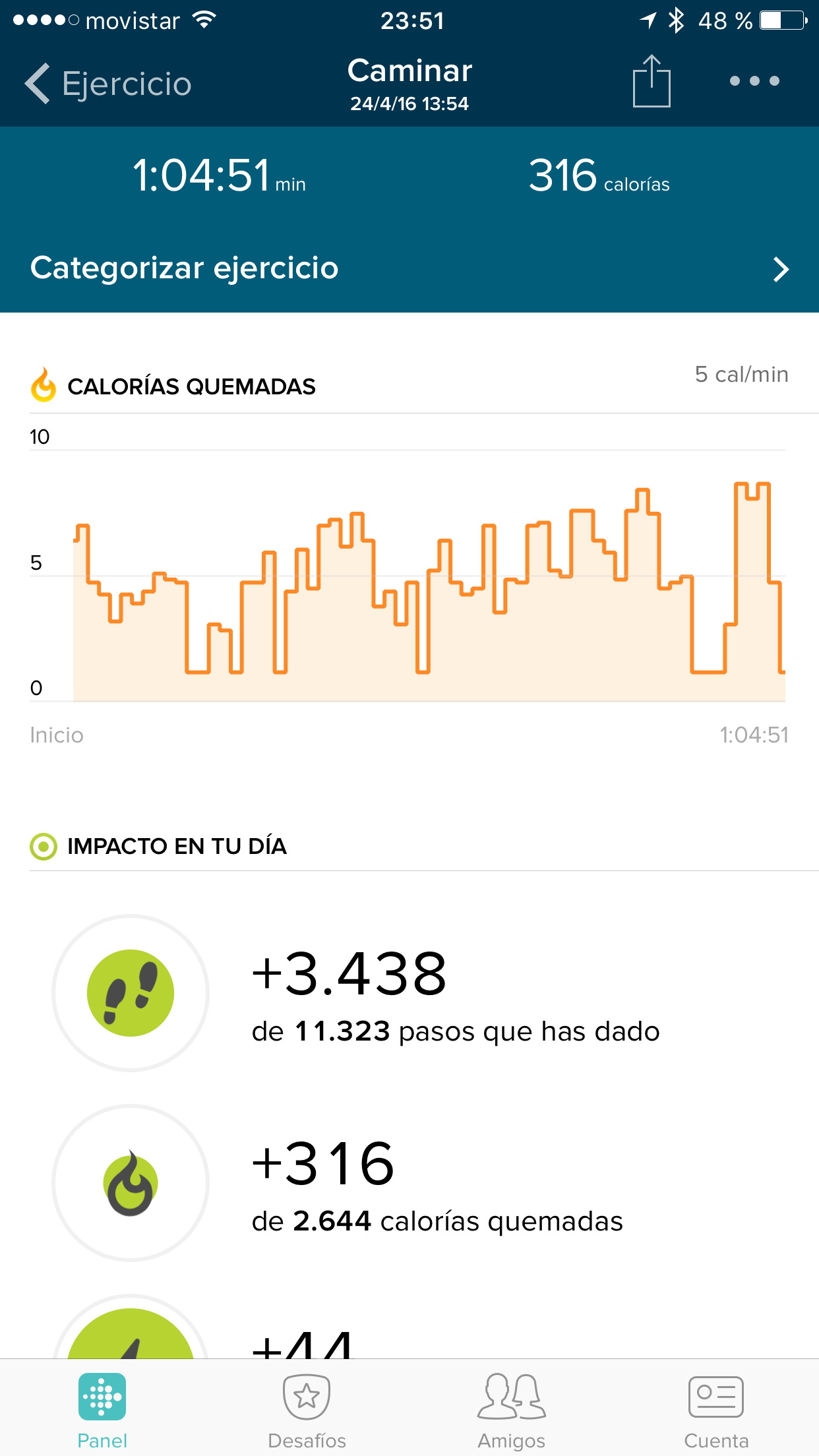 La aplicación muestra información relativa a pasos, distancia recorrida, calorías consumidas y otros parámetros de forma agregada, con gráficas muy vistosas por día, semana, mes, etc.