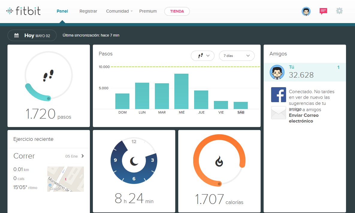 A diferencia de otras pulseras, Fitbit puede mostrar también la información recopilada en una página web, donde se resulta más sencillo navegar por las gráficas.